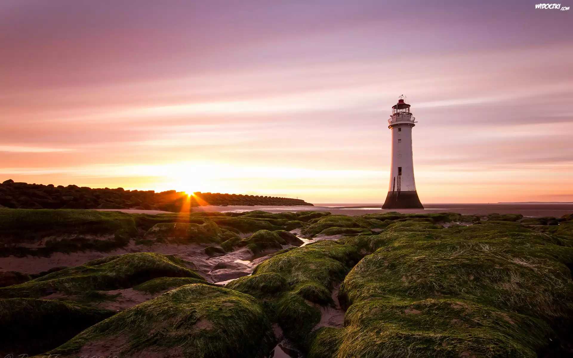 latarnia morska, lato, zachód słońca