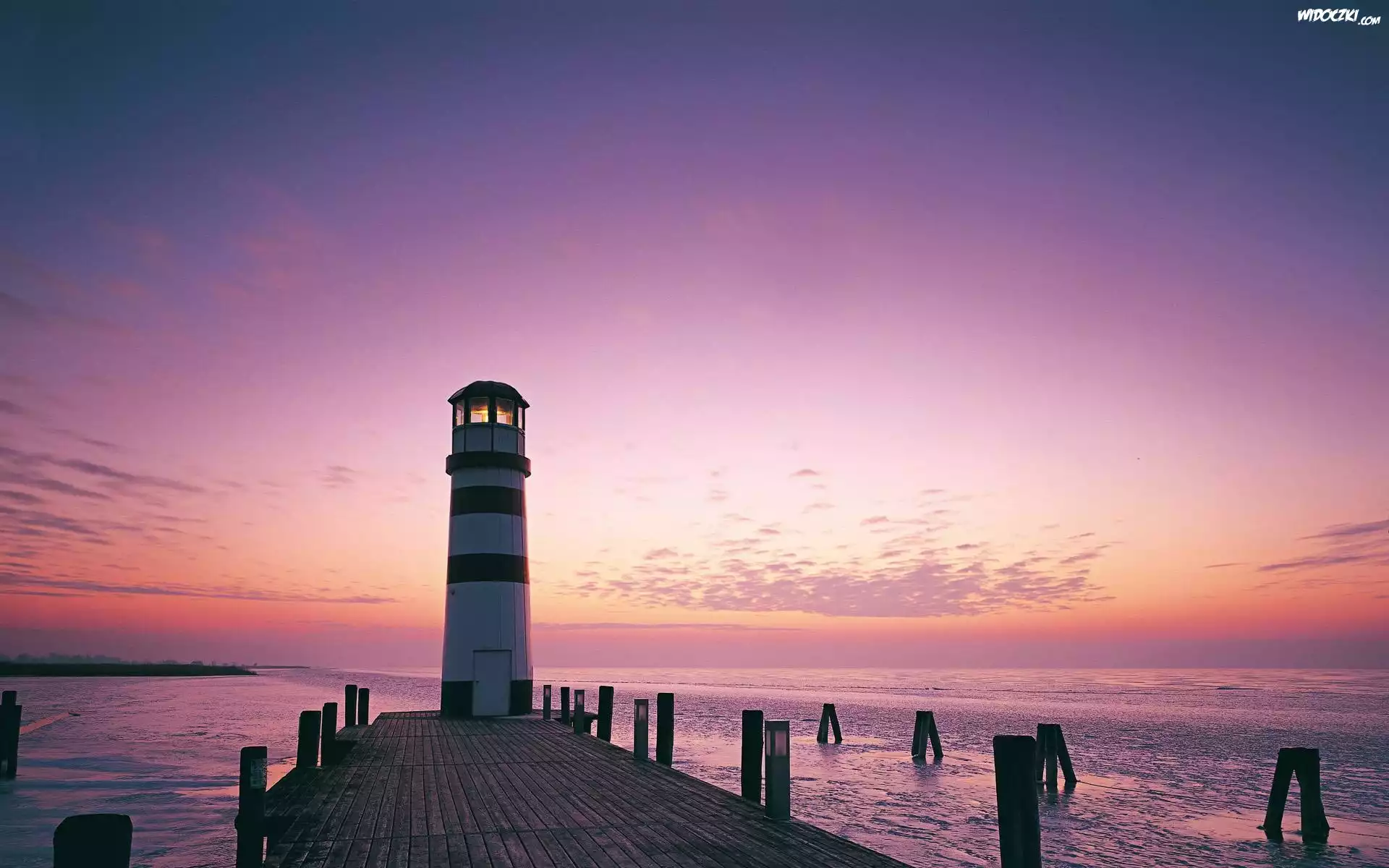 Zdjęcia, latarnia morska, lato, morze, zachód słońca