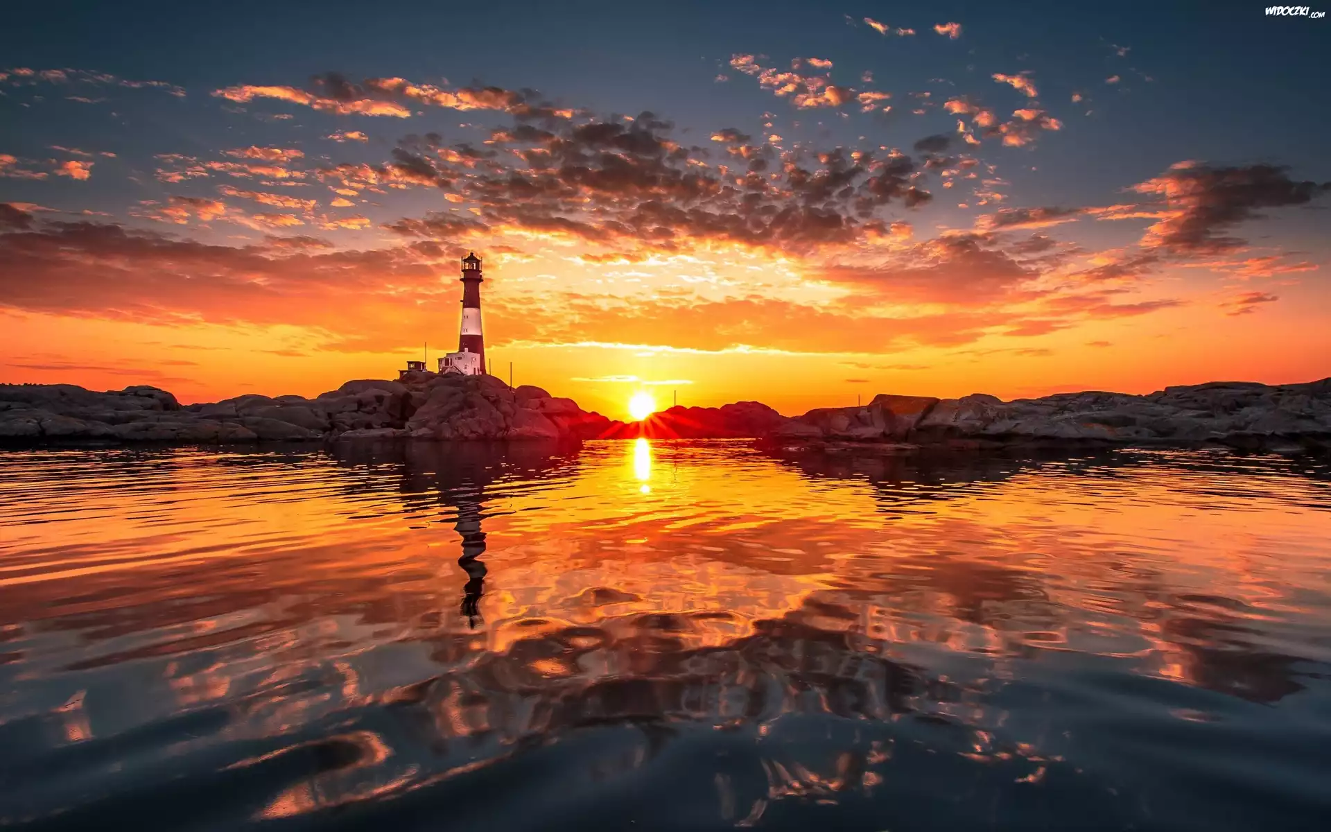 Zdjęcia, Latarnia, Morska, Morze, Skały, Zachód, Słońca