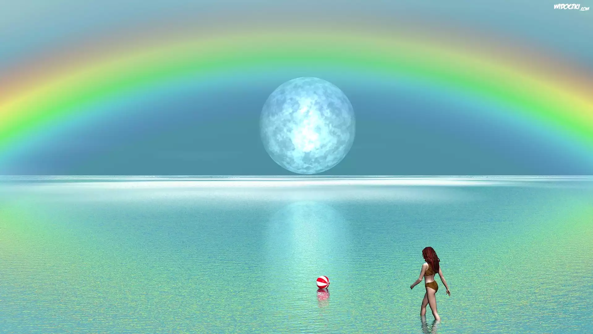 Lato, Morze, Tęcza, 2D, Kobieta