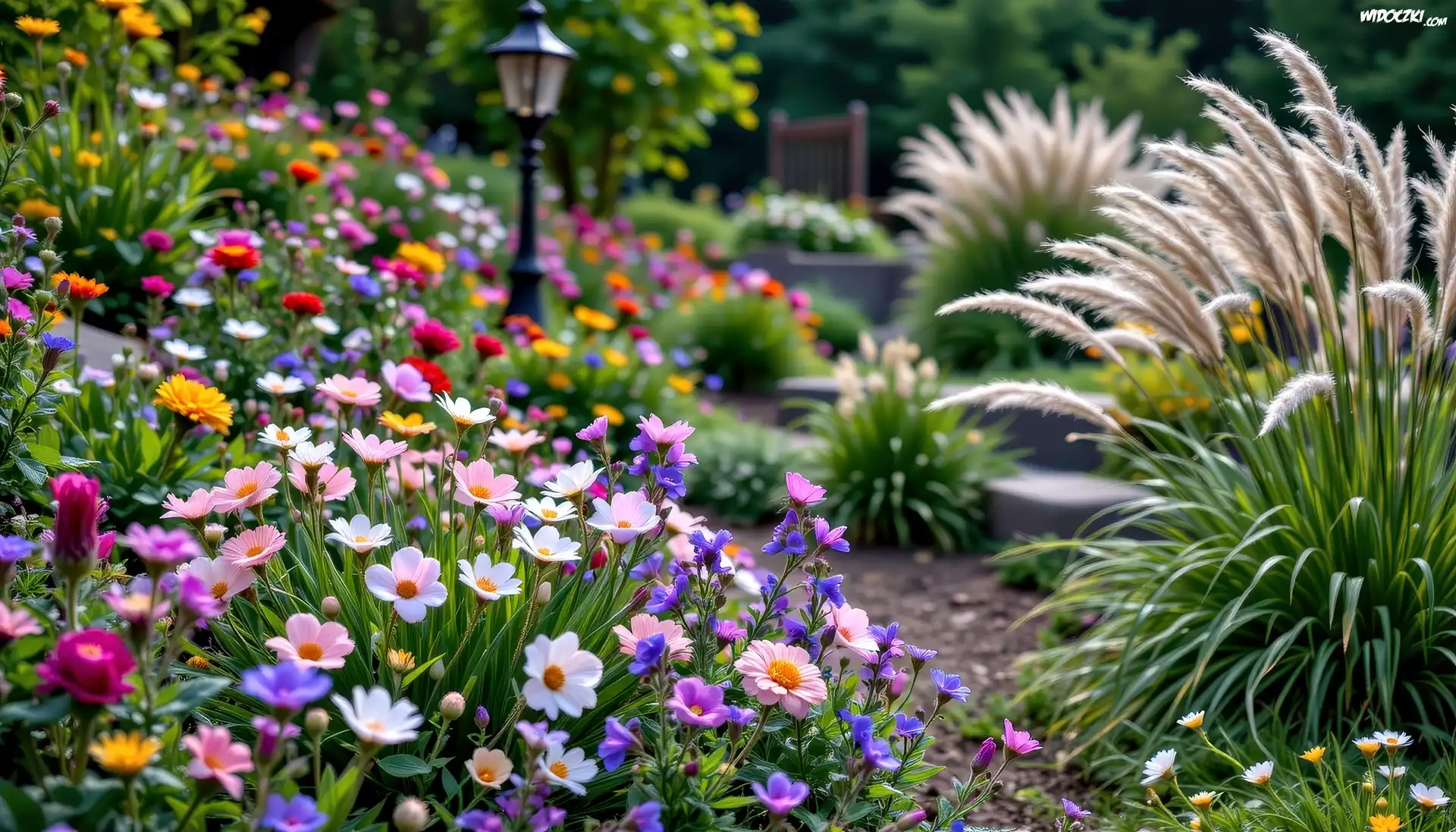 Ogród, Kwiaty, Trawy, Lato, Grafika AI