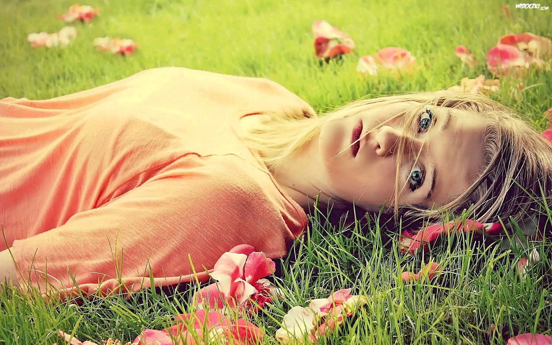Zdjęcia, Lato, Kobieta, Łąka, Kwiaty