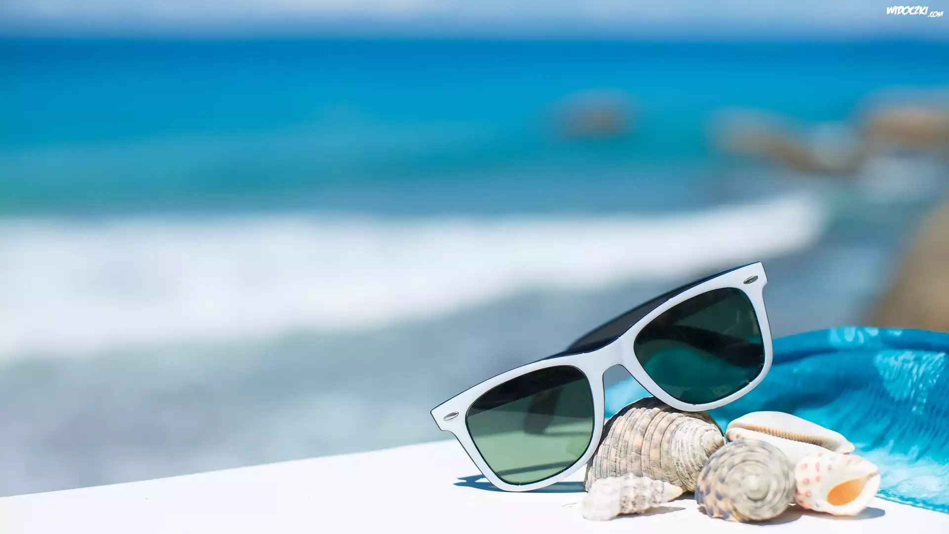 Lato, Okulary, Muszelki, Apaszka, Morze