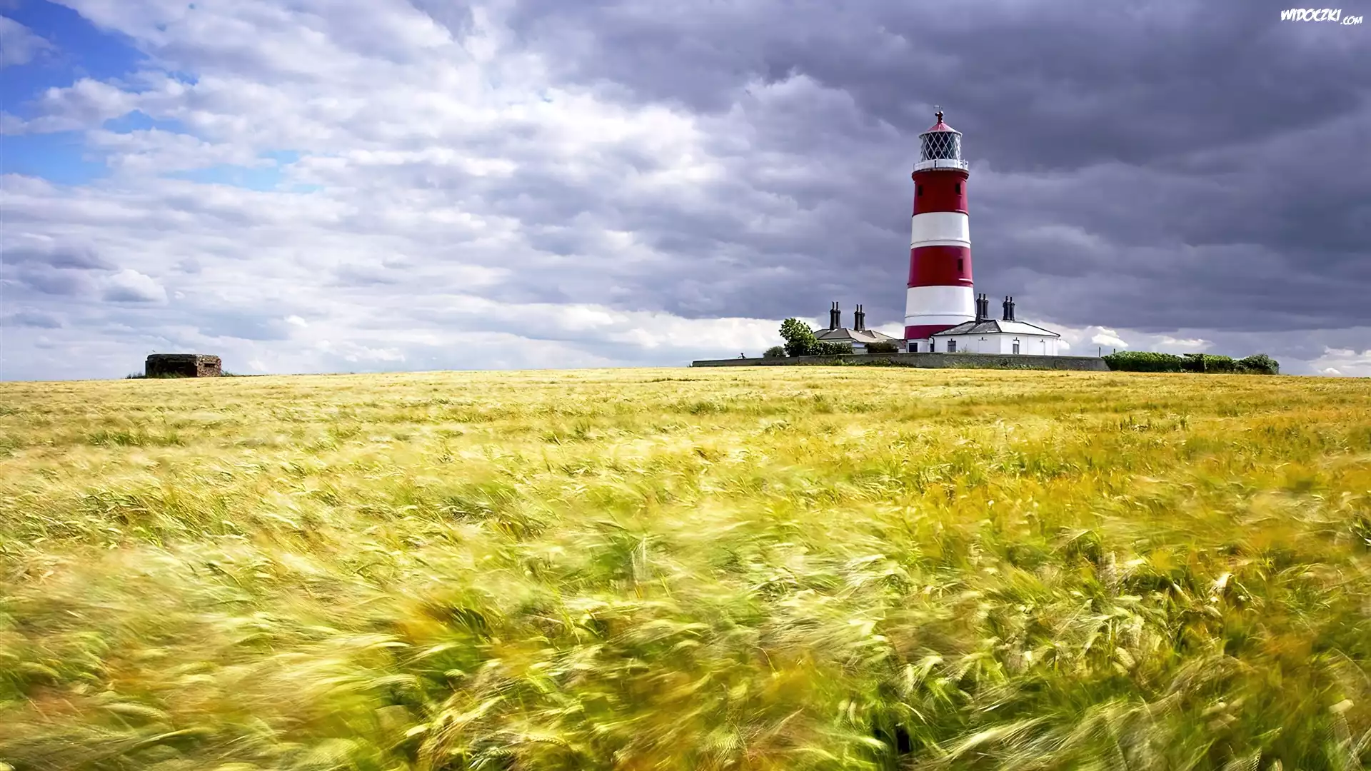 Zdjęcia, Lato, Łąka, Niebo, Chmury, Latarnia