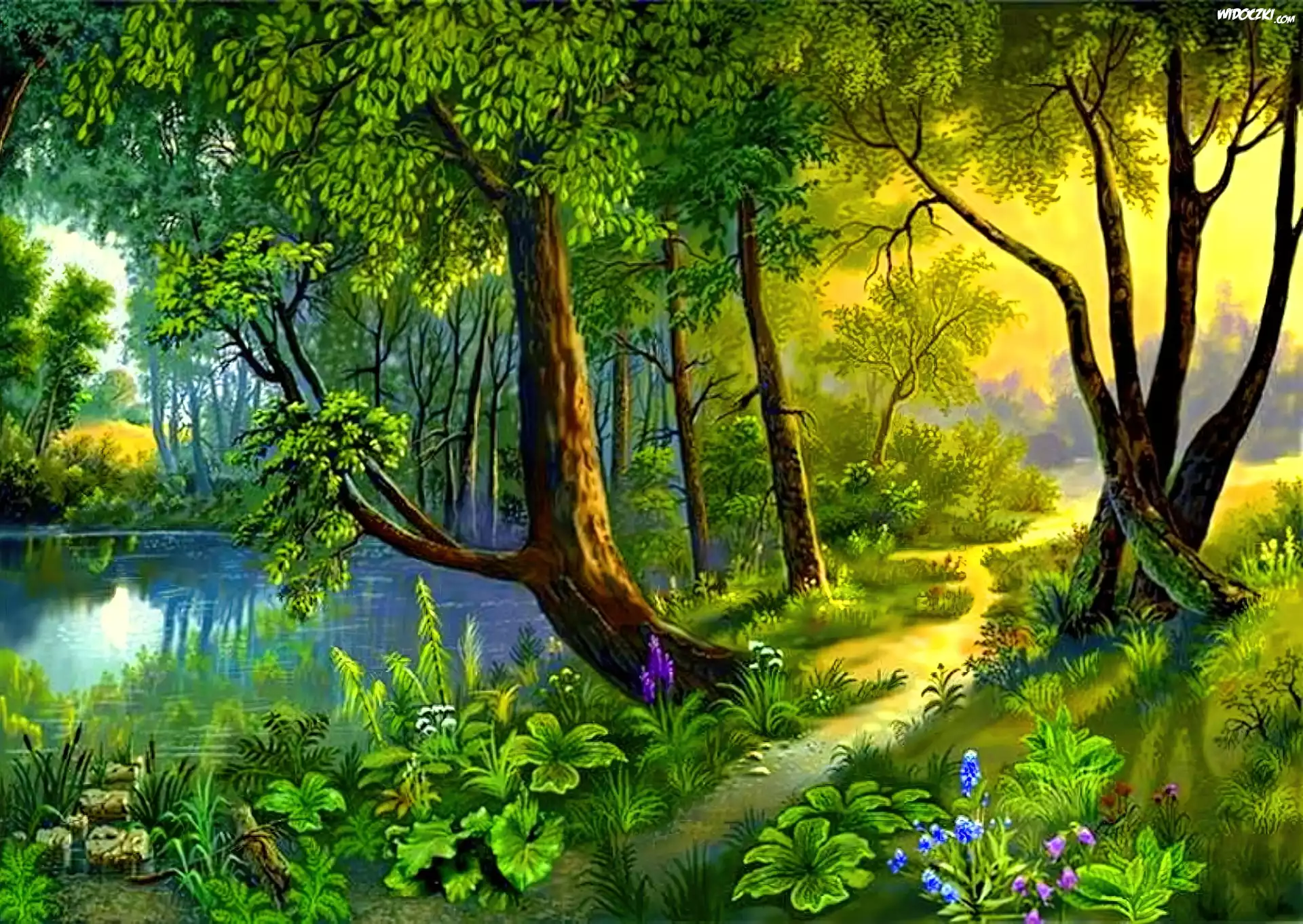 Zdj臋cia, Lato, Jezioro, Droga, Drzewa