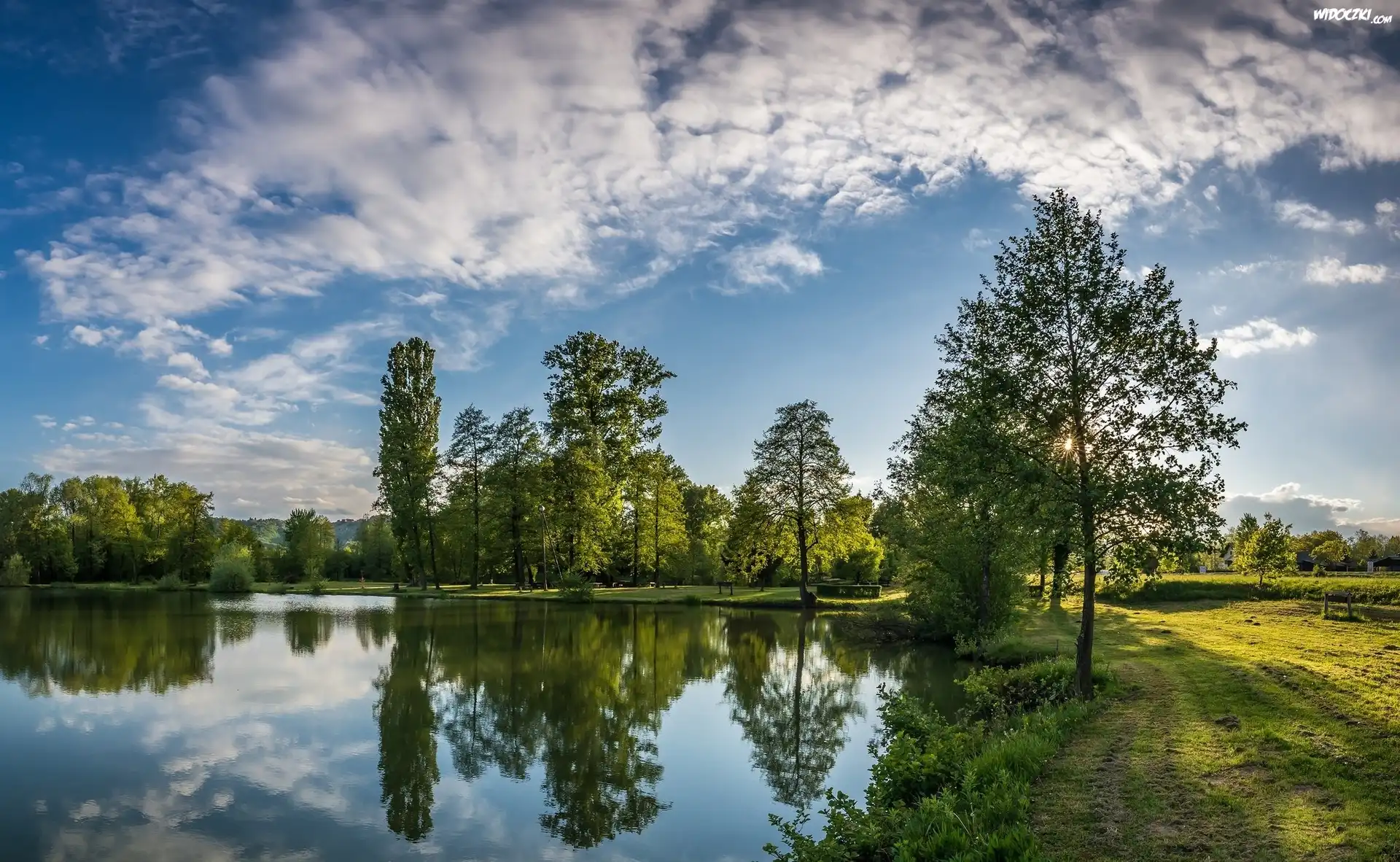 Zdj臋cia, Lato, Jezioro, Drzewa, Niebo