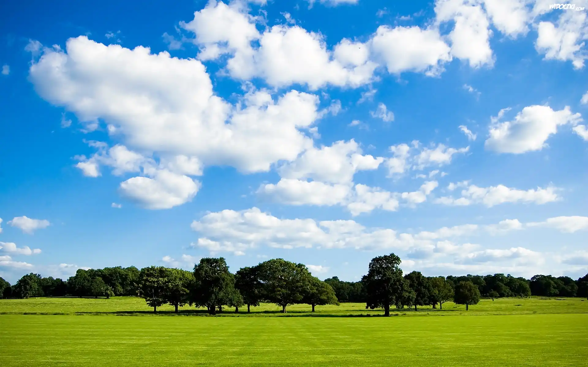 Zdjęcia, Lato, Pole, Drzewa, Obłoki