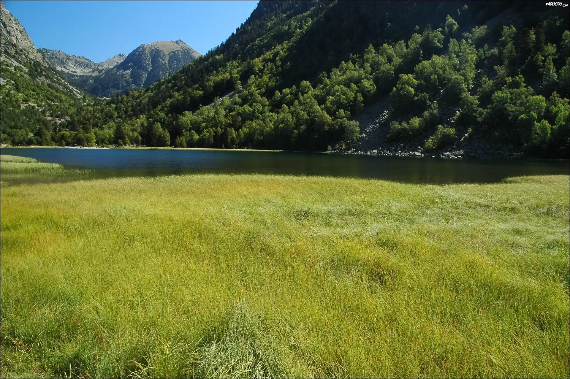 Zdjęcia, Łąka, Góry, Las, Lato, Rzeka