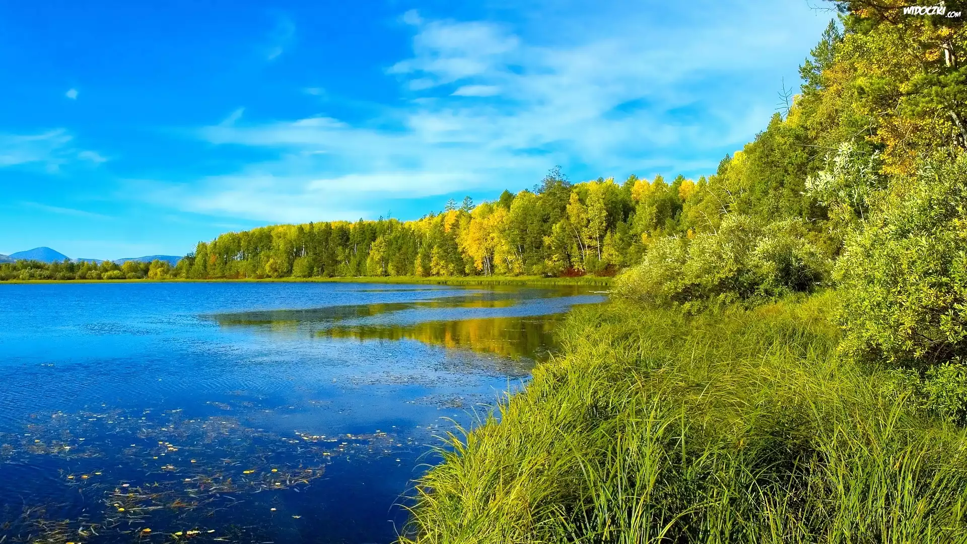 Zdj臋cia, Lato, Jezioro, Las, Trawa