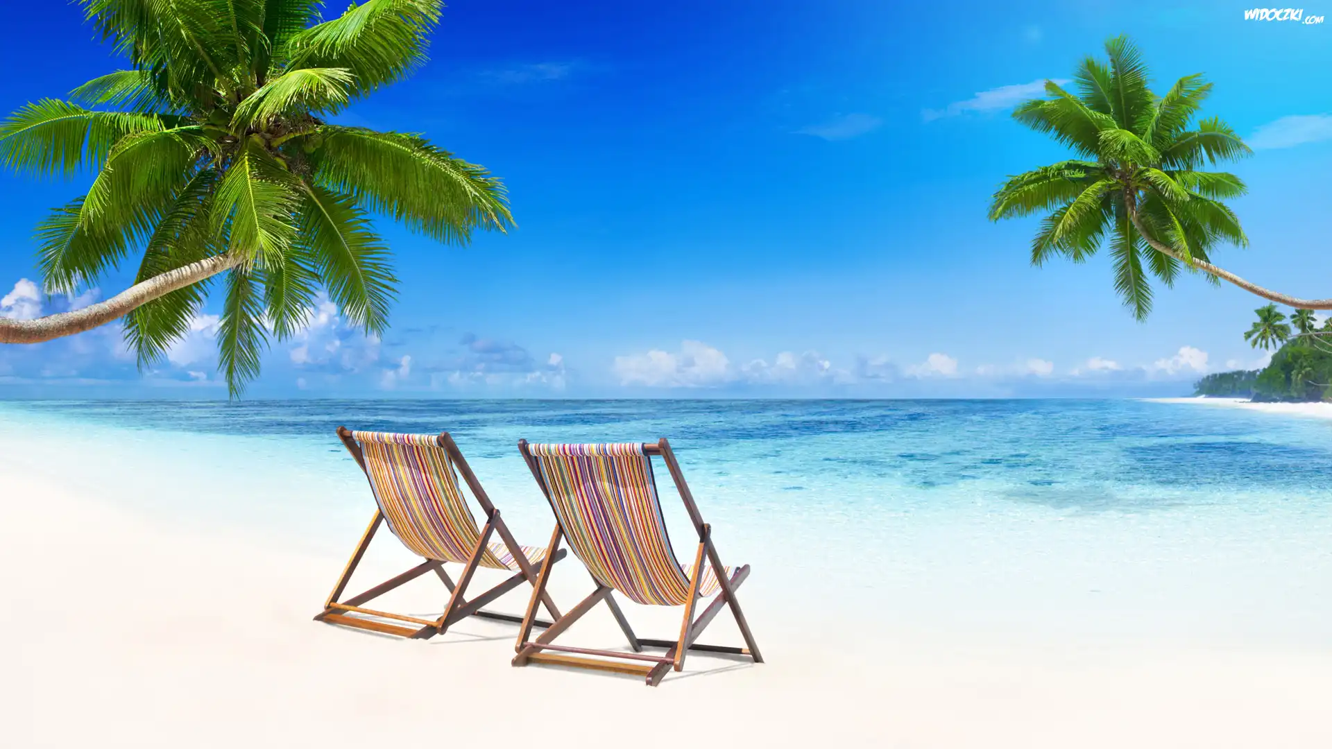 Lato, Plaża, Morze, Palmy, Leżaki, Wakacje