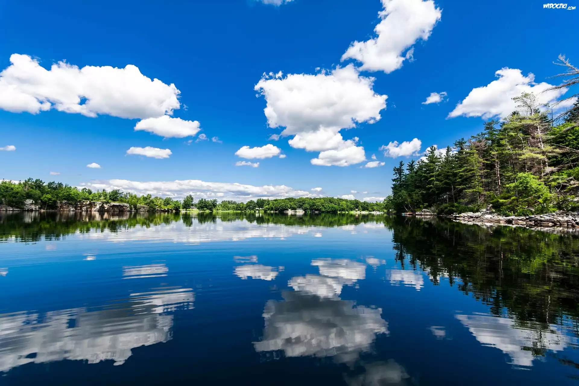 Zdjęcia, Lato, Rzeka, Obłoki, Odbicie