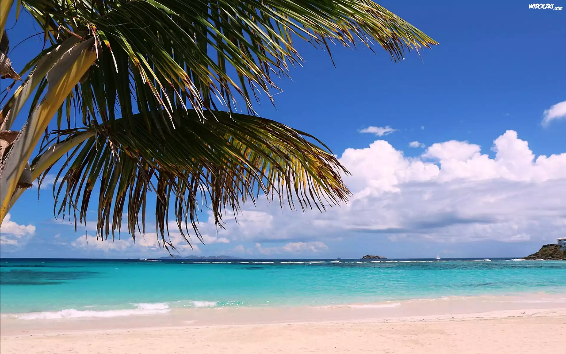 Zdjęcia, Lato, Plaża, Morze, Palmy, Chmury