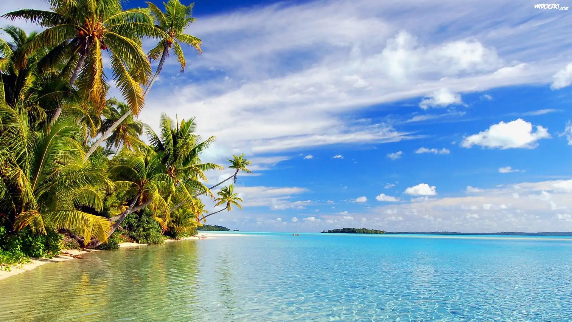 Zdjęcia, Lato, Woda, Palmy, Chmury