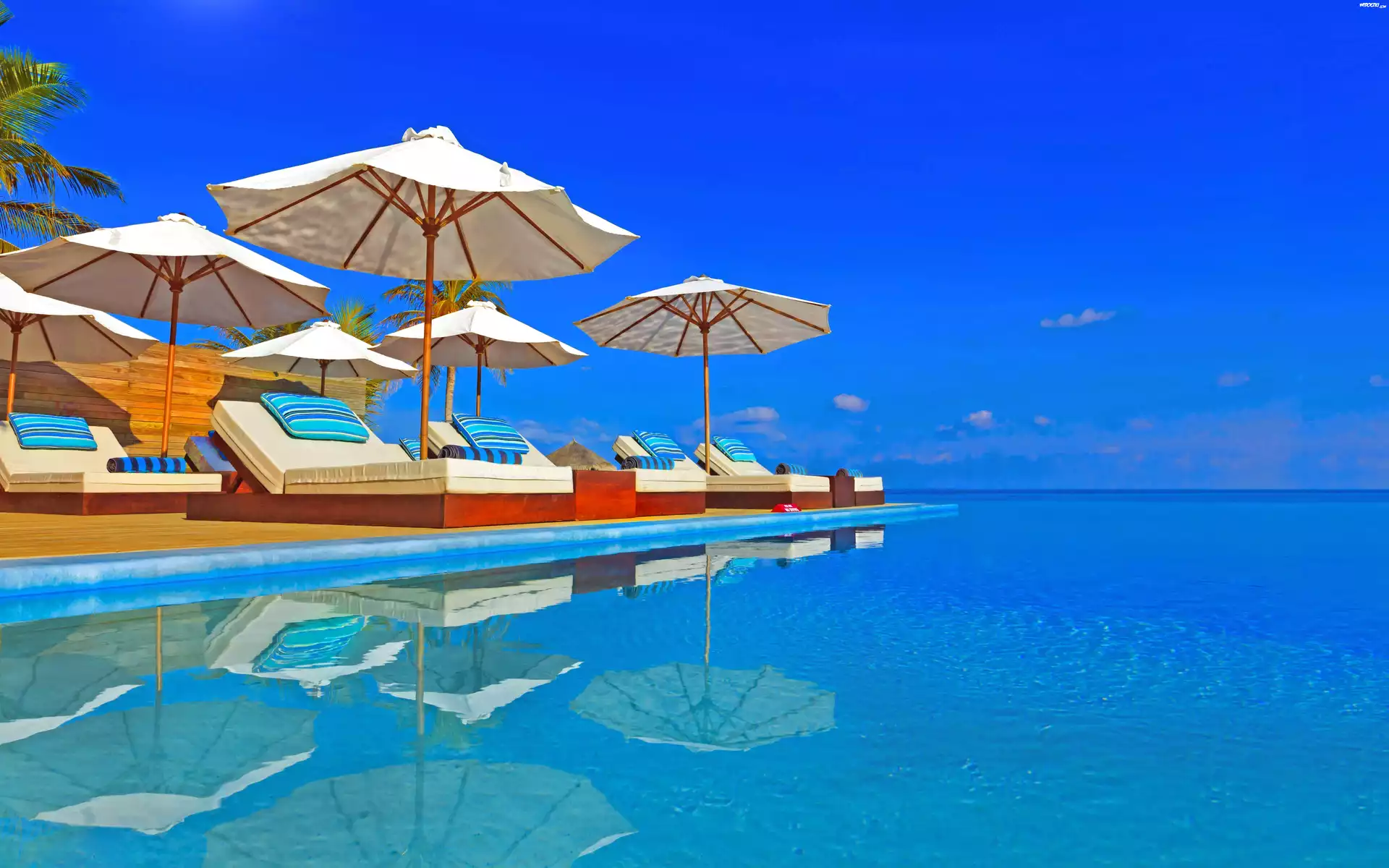Lato, Morze, Niebo, Parasole, Wakacje