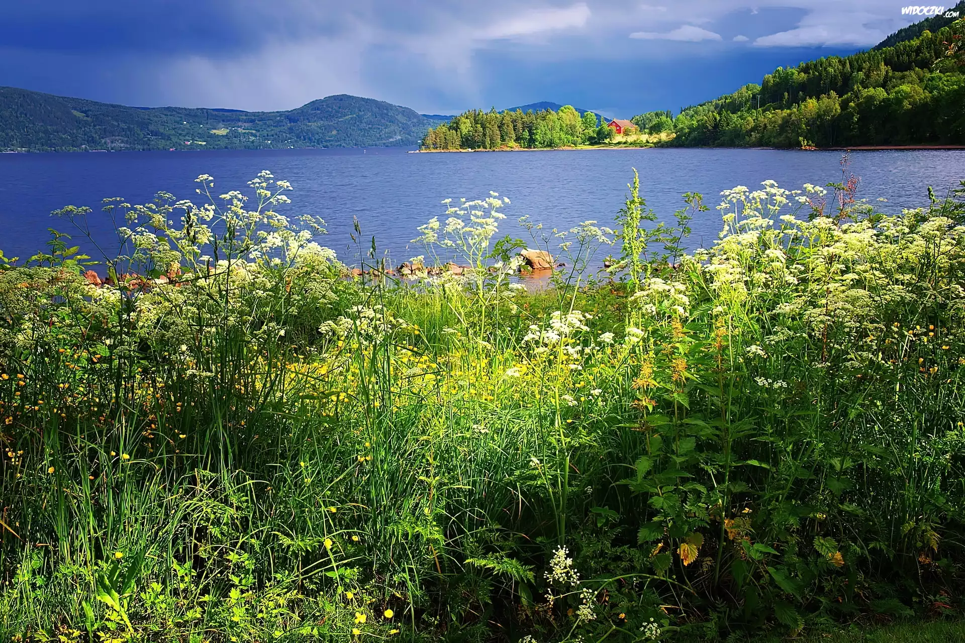 Zdjęcia, Lato,Góry, Jezioro, Dom, Polne, Rośliny