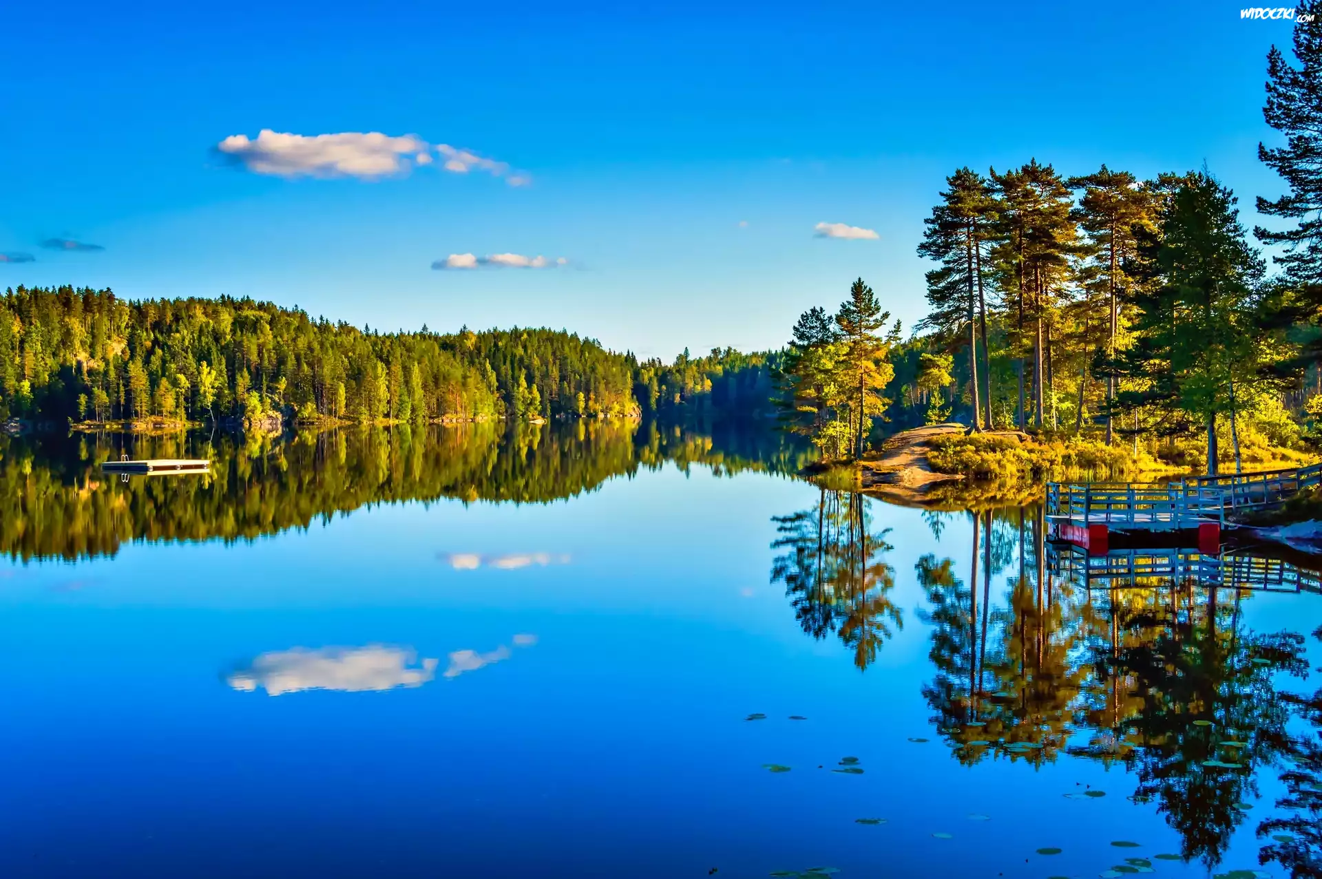Zdjęcia, Lato, Jezioro, Lasy, Pomost, Odbicie
