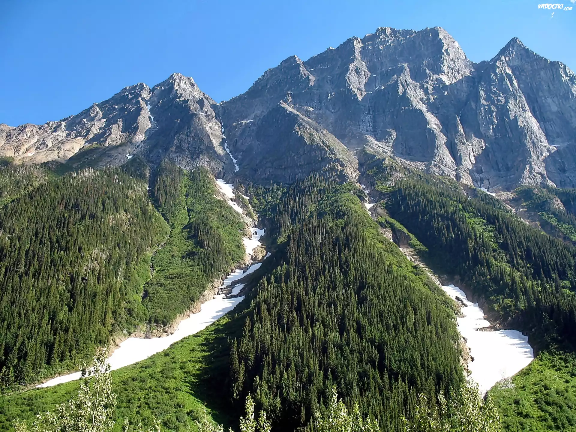 Lato, Góry, Lodowiec, Lasy, Przebijające, Światło
