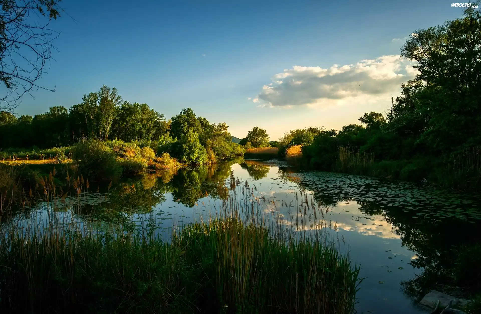 Lato, Rzeka, Zieleń, Przebijające światło