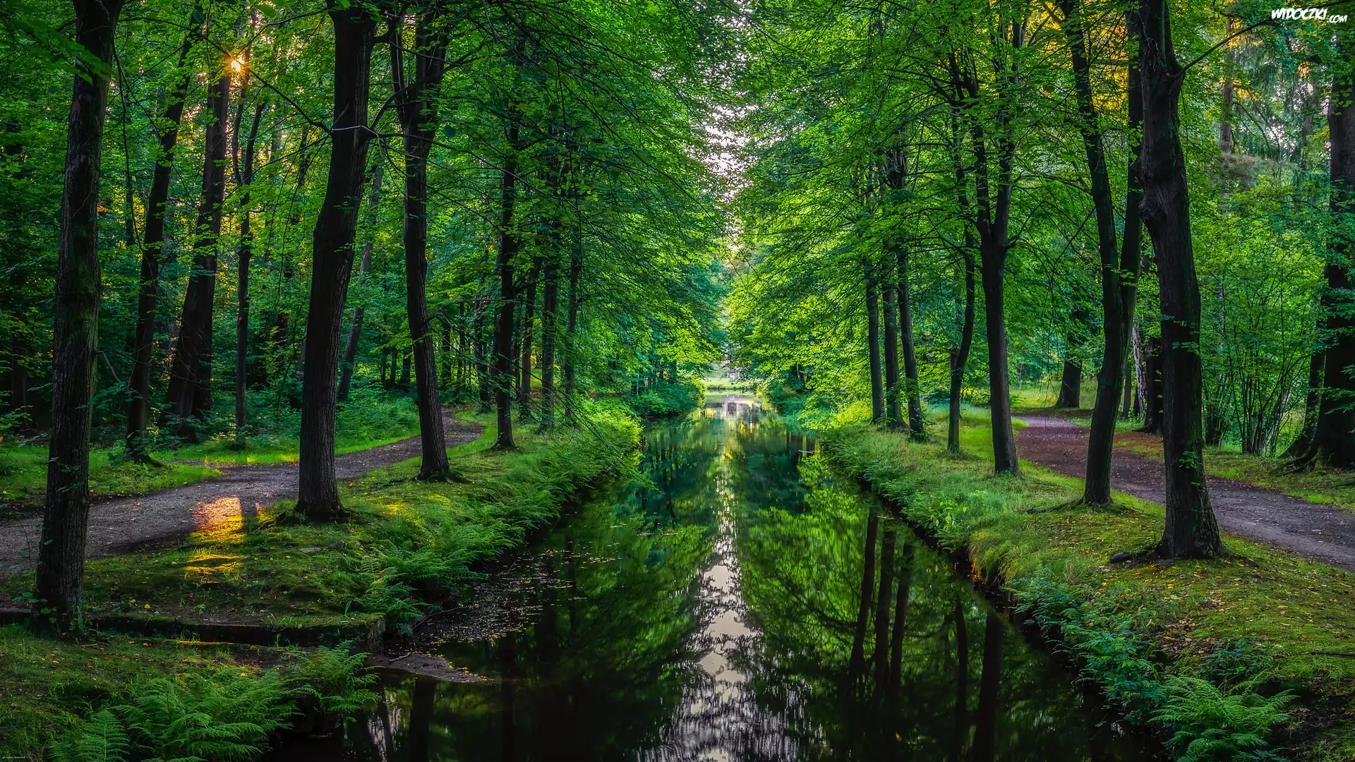 Zdjęcia, Rzeka, Drzewa, Odbicie, Lato