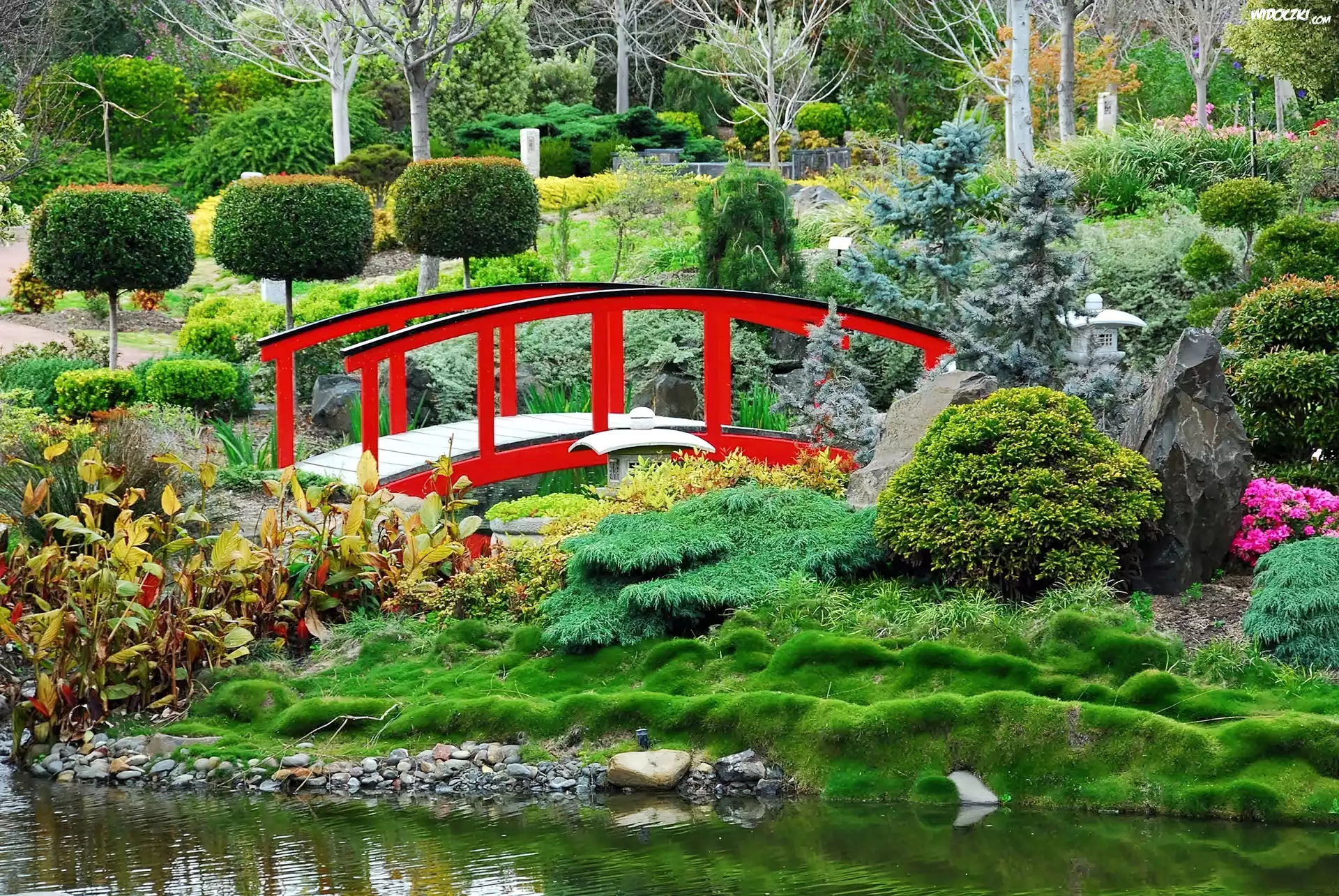 Zdjęcia, Lato, Ogród, Japoński, Staw, Mostek