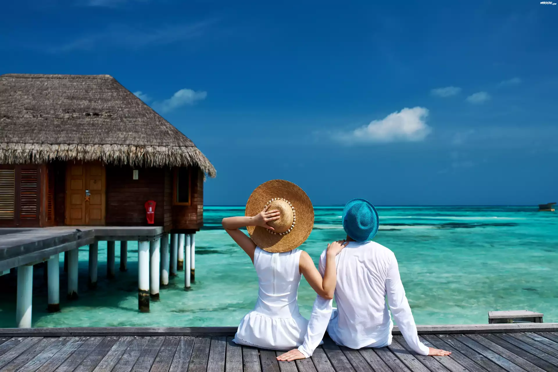 Wakacje, Lato, Hotel, Molo, Morze, Urlopowicze, Kapelusze
