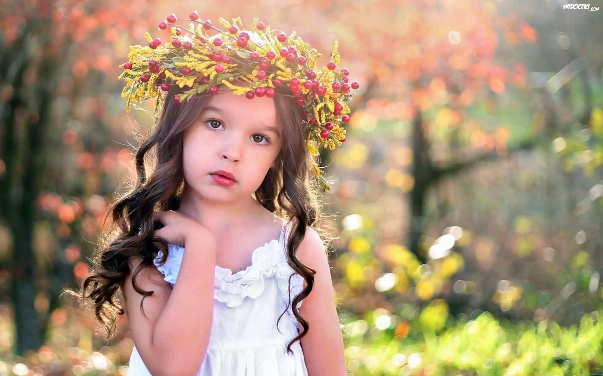 Lato, Ogród, Dziewczynka, Wianek, Rozmycie