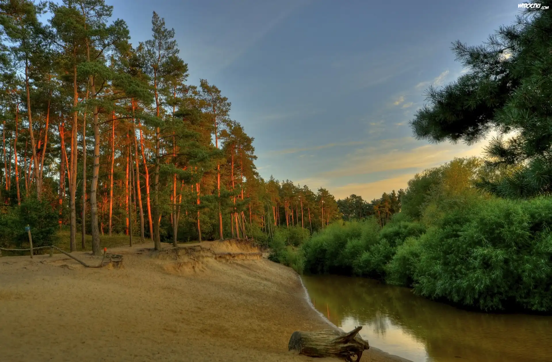 Zdjęcia, Lato, Las, Rzeka, Zachód, Słońca