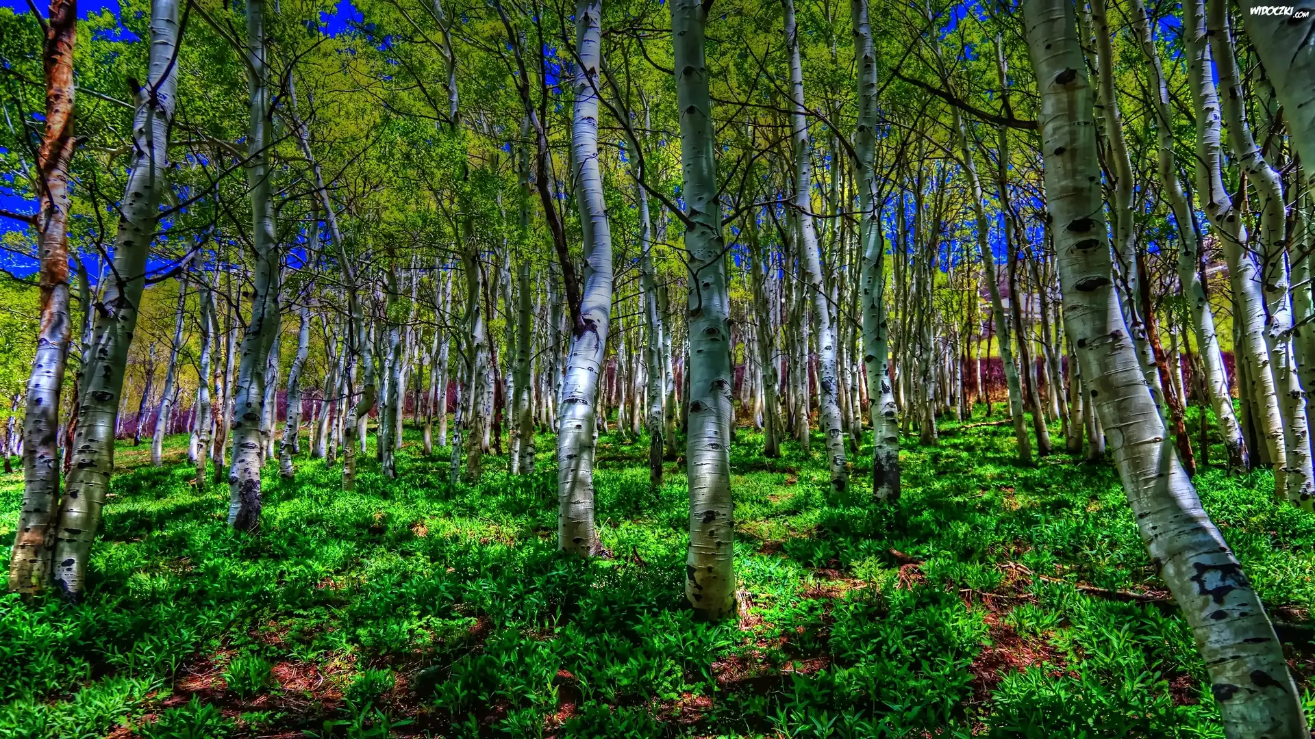 Zdjęcia, Lato, Brzozy, Zielone, Krzaki