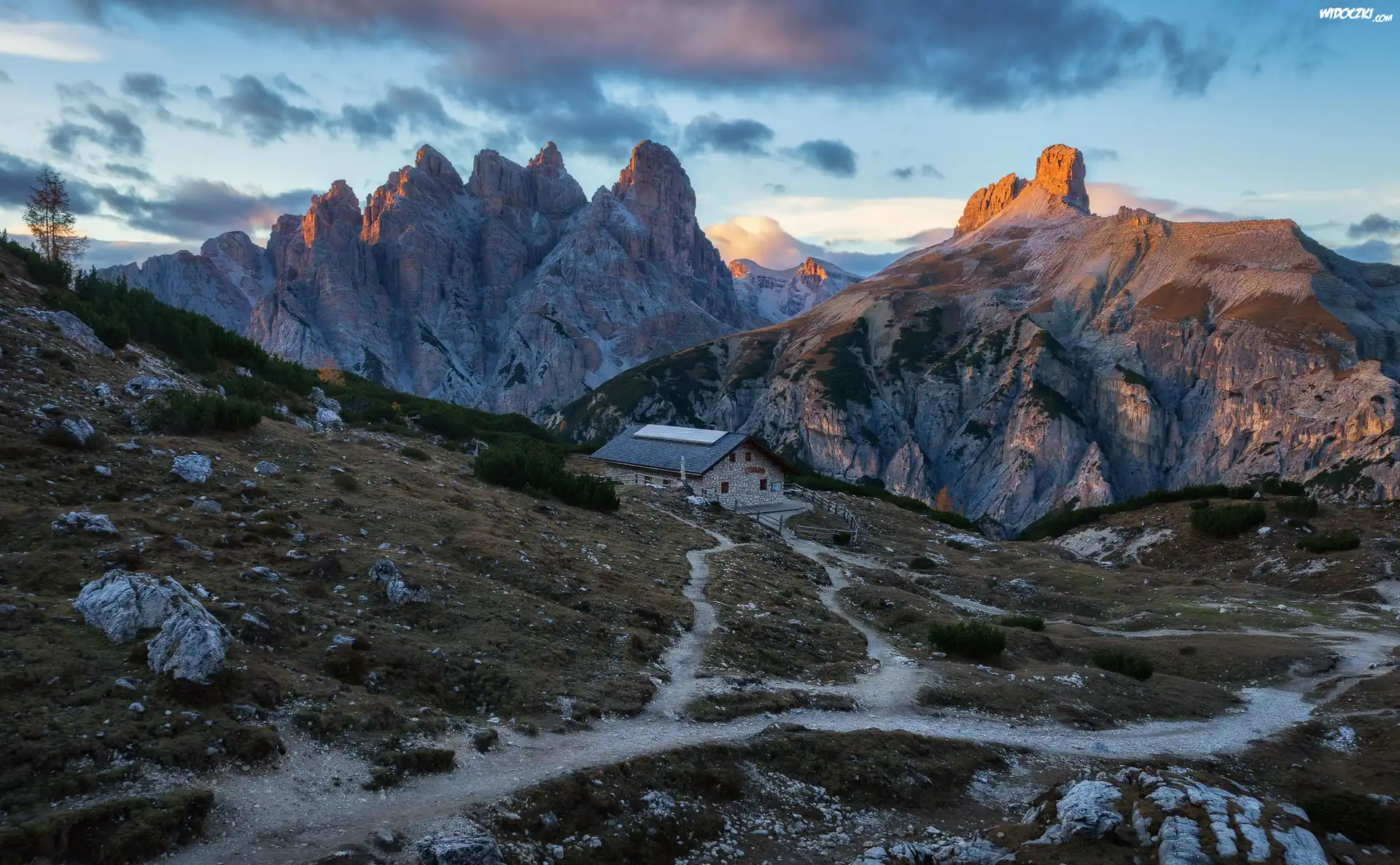 Zdjęcia, Góry Dolomity, Tre Cime di Lavaredo, Szczyty, Ścieżki, Dom, Prowincja Belluno, Włochy