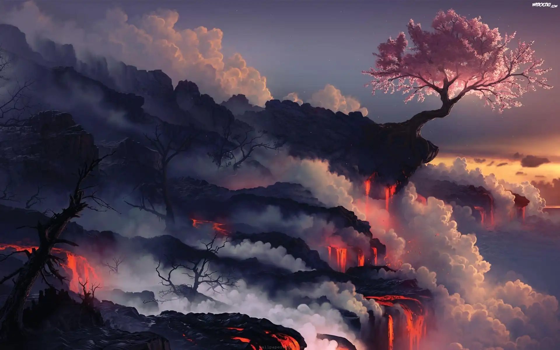 Zdjęcia, Wulkan, Lawa, Drzewko