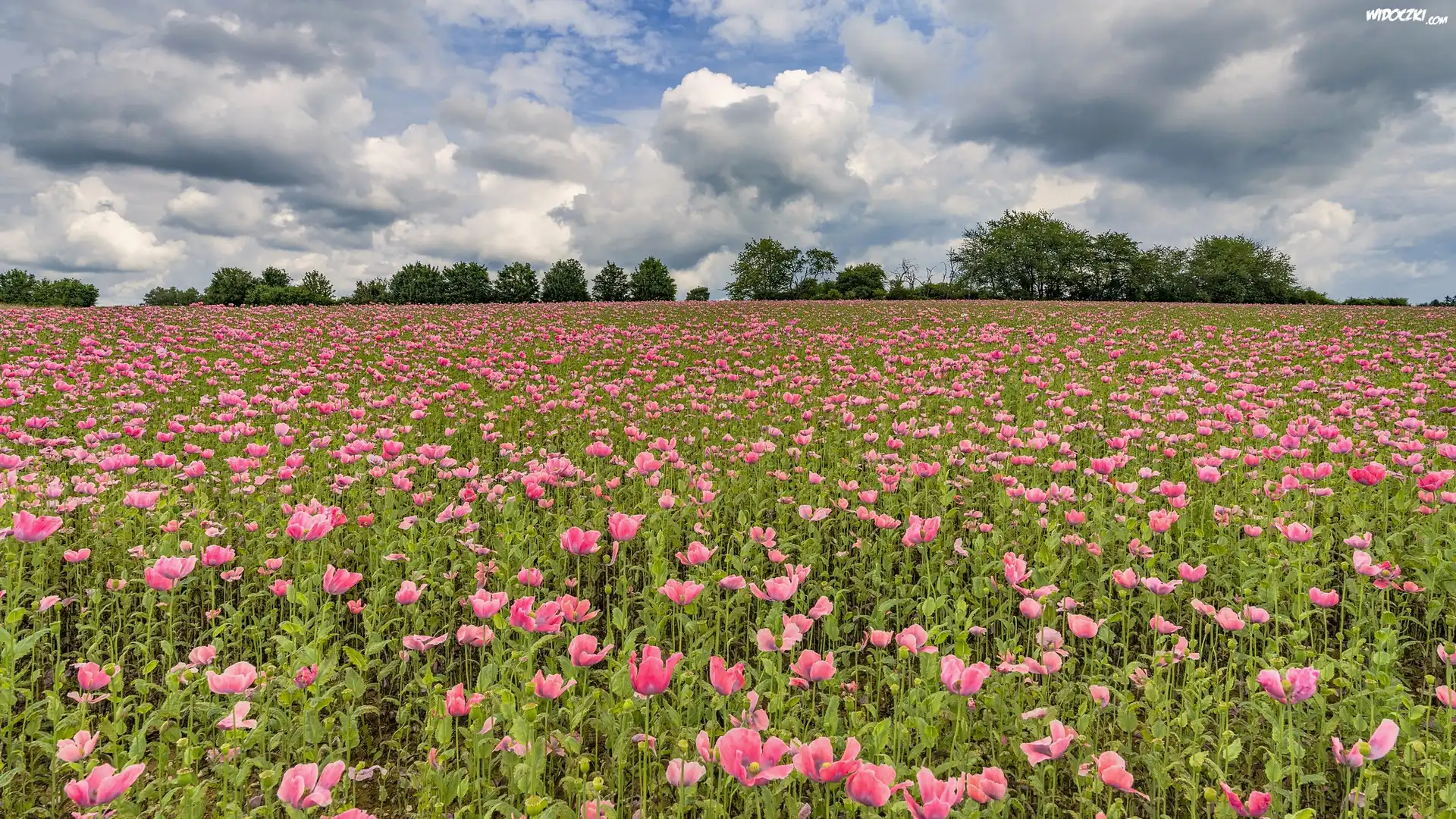 Zdjęcia, Mak lekarski, Różowy, Łąka, Pole