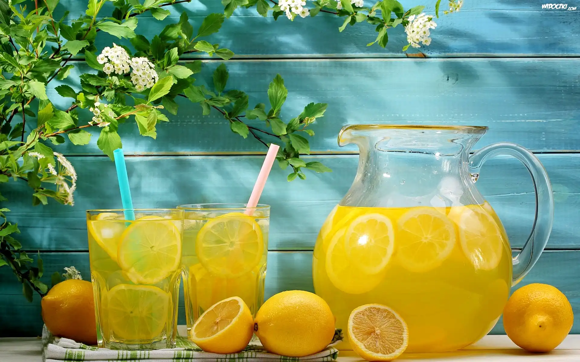 Lemoniada, Cytryny, Napoje, Kwiaty, Lato