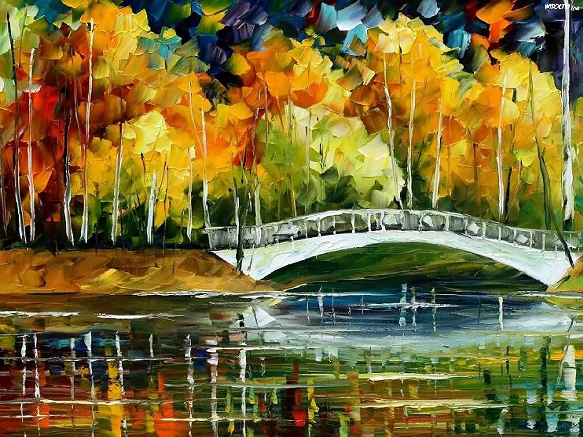 Zdj臋cia, Leonid, Afremov, Park, Mostek, Staw