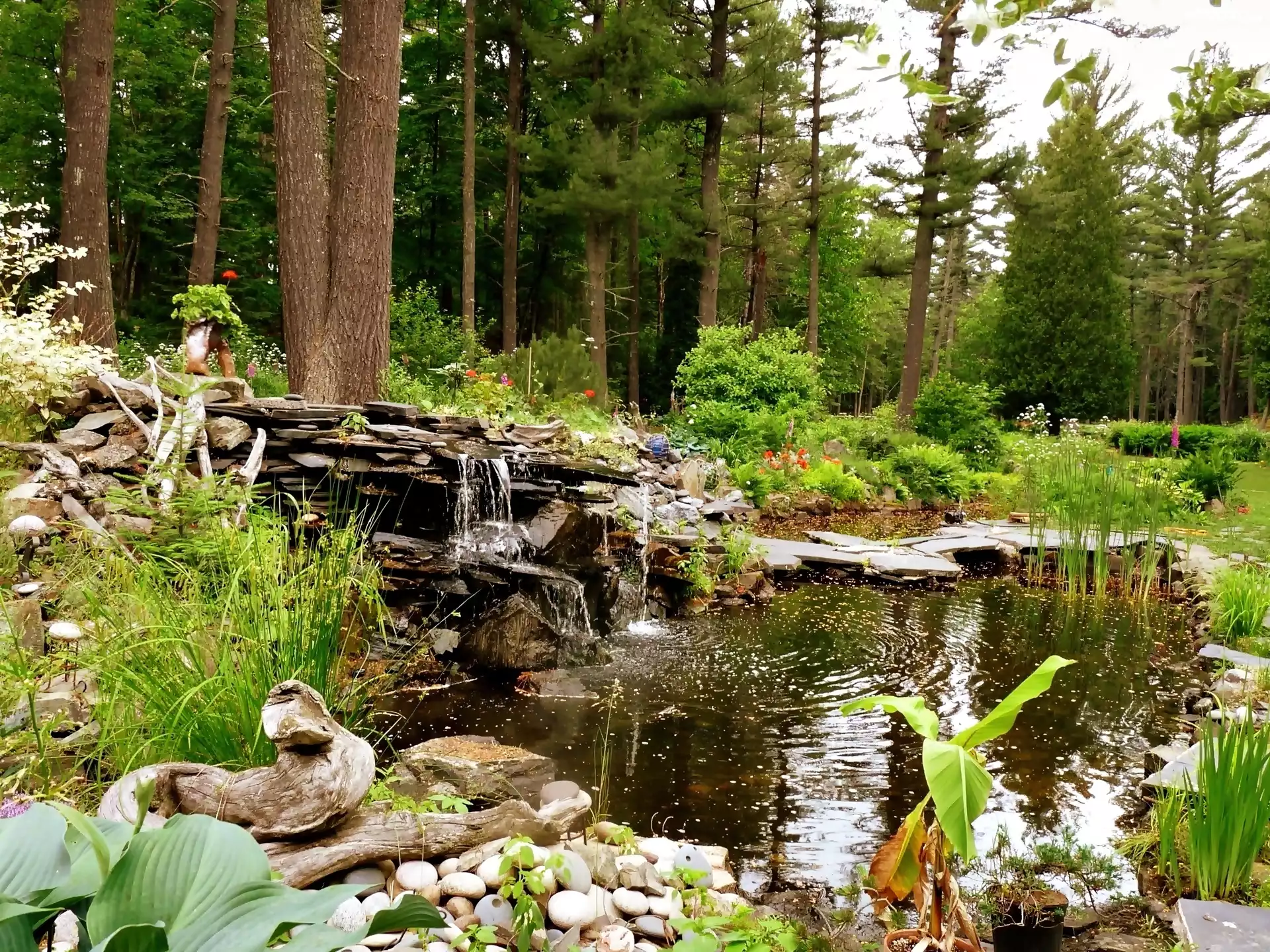 Leśny, Ogród, Skałki, Kamienie, Kaskada, Staw
