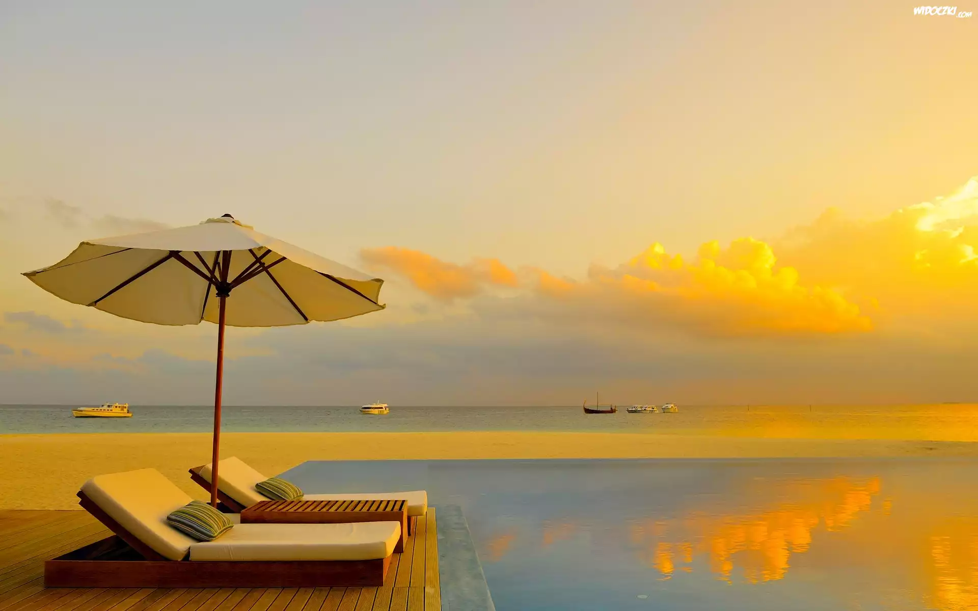 Zdjęcia, Morze, Leżaki, Parasol, Wakacje