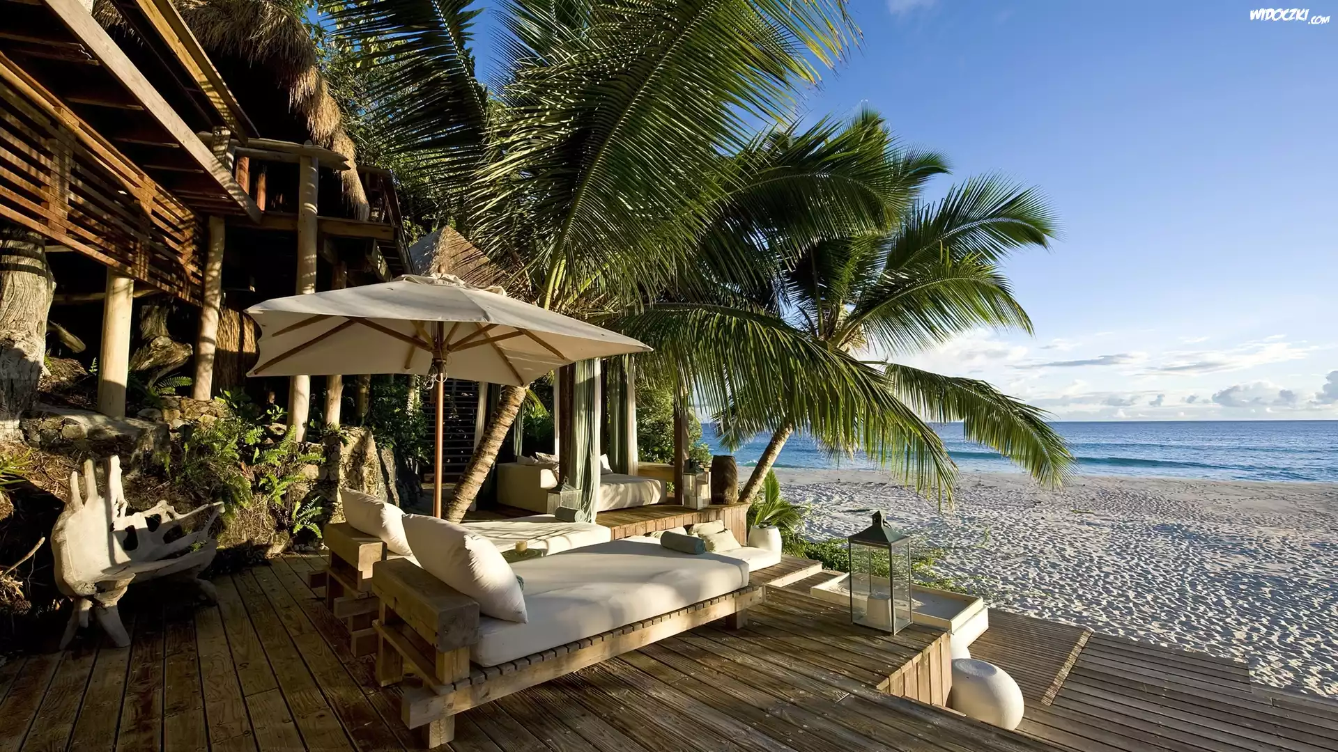 Zdjęcia, Taras, Leżaki, Palmy, Parasol, Wakacje