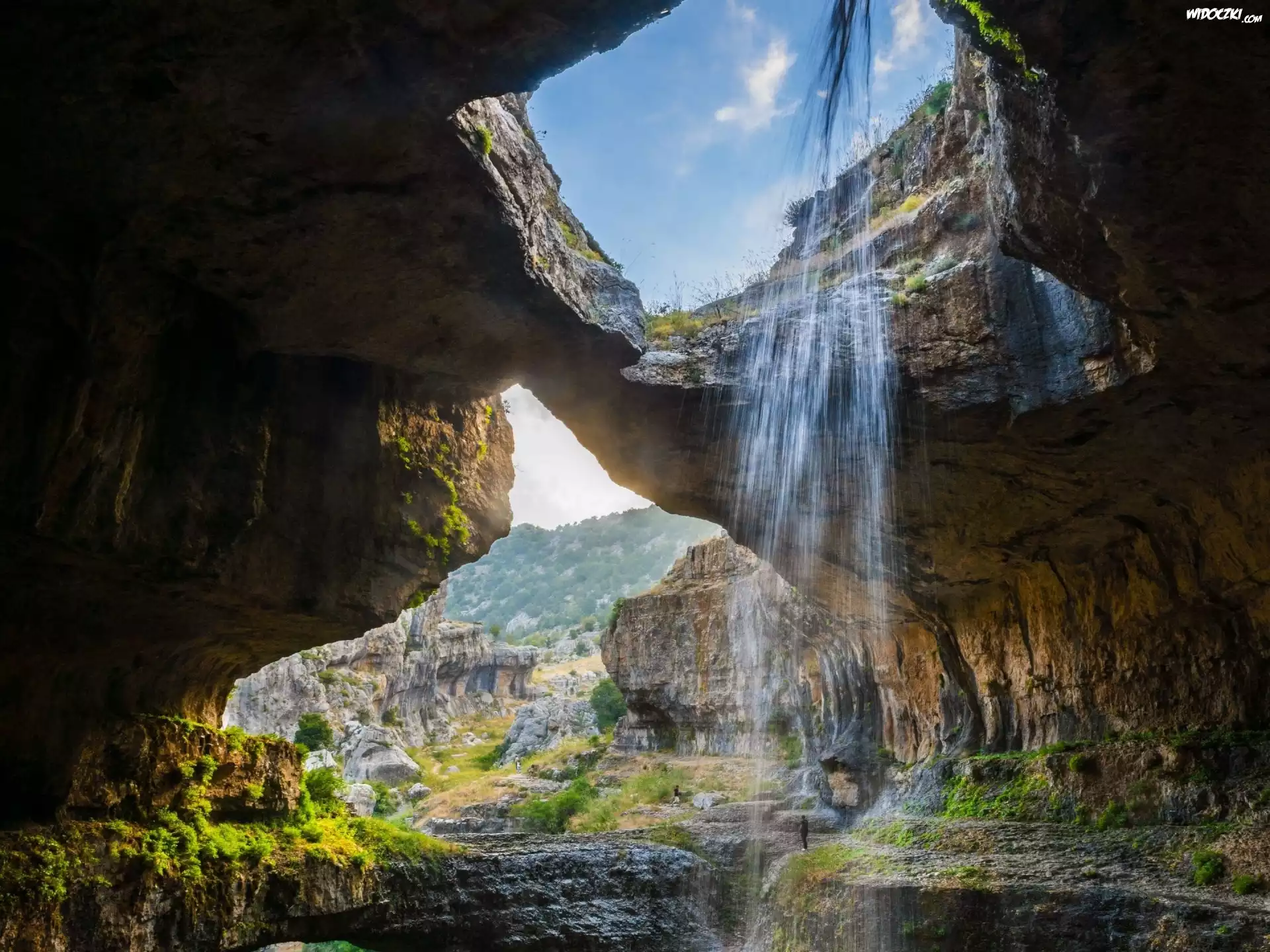 Liban, Jaskinia, Trzech, Mostów, Wodospad, Skały