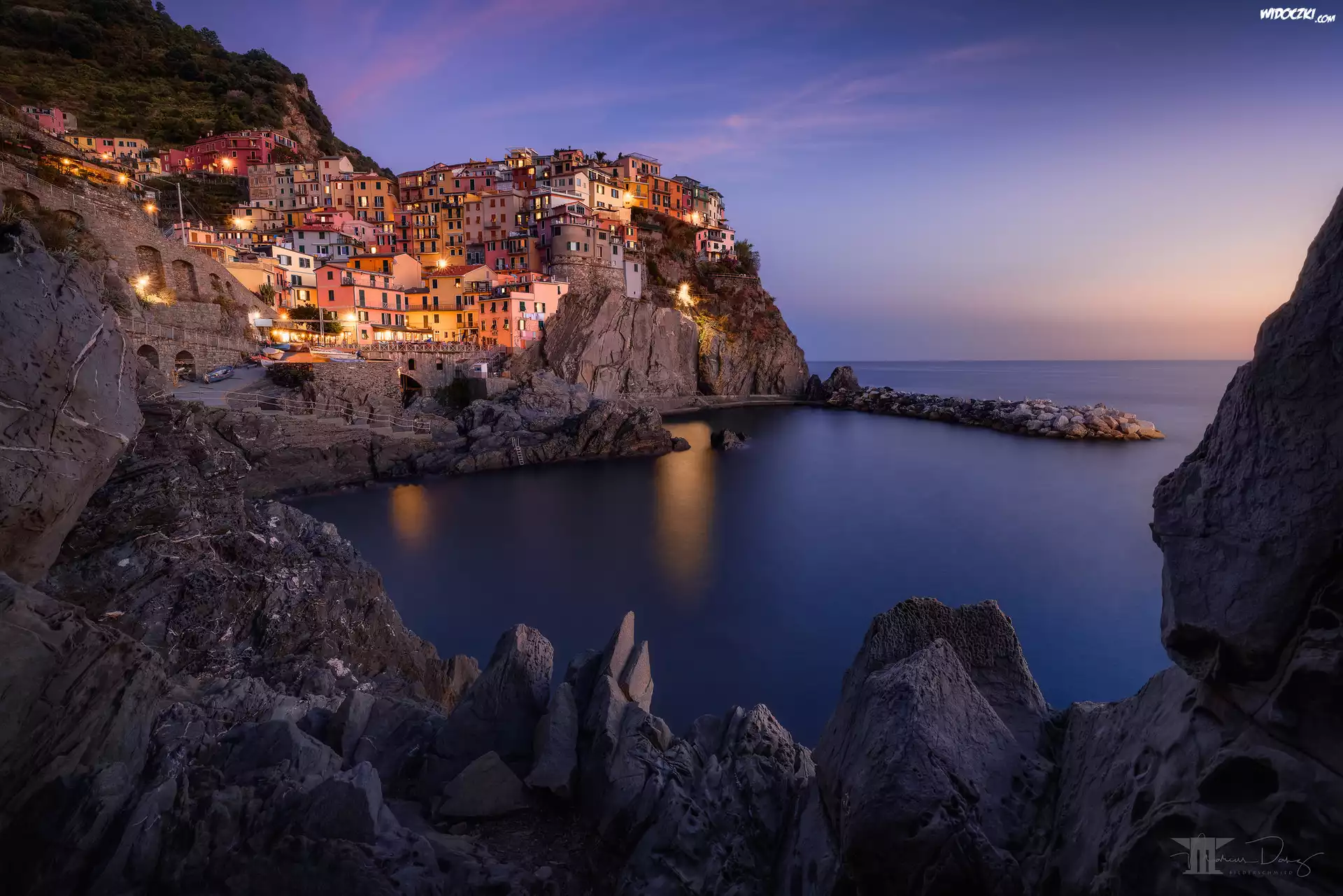 Zdjęcia, Cinque Terre, Manarola, Skały, Domy, Morze Liguryjskie, Gmina Riomaggiore, Liguria, Włochy