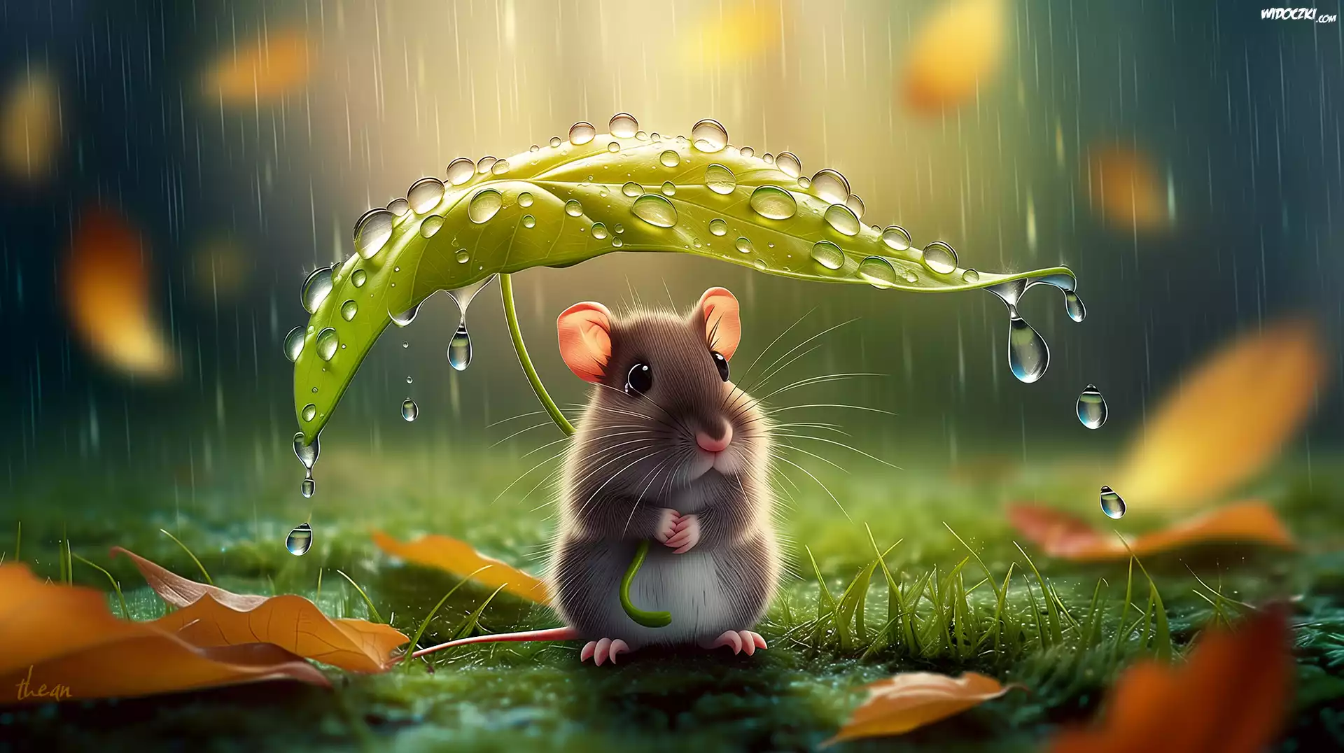 Myszka, Liść, Deszcz, Grafika AI