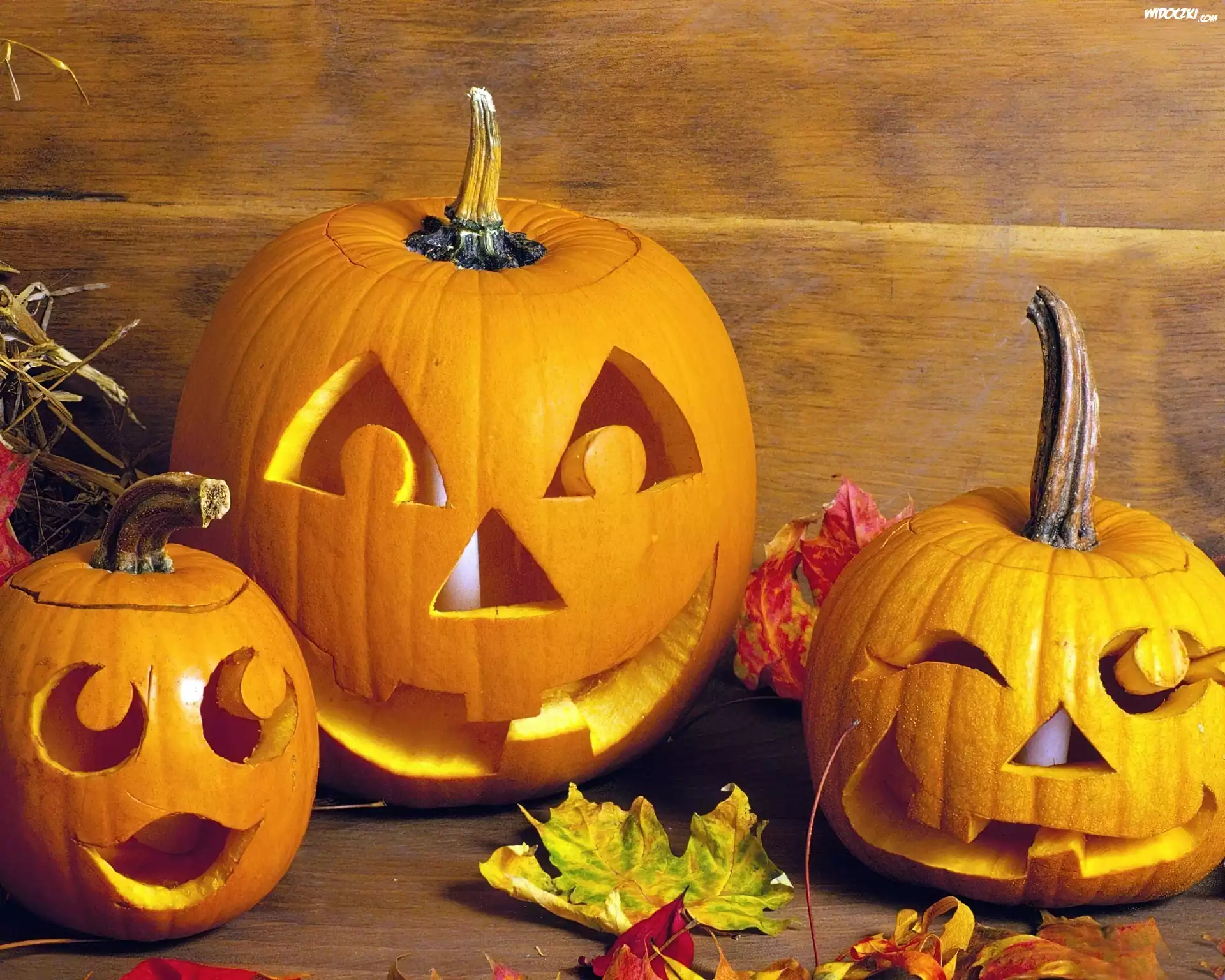 Zdjęcia, Dynie, Liście, Halloween