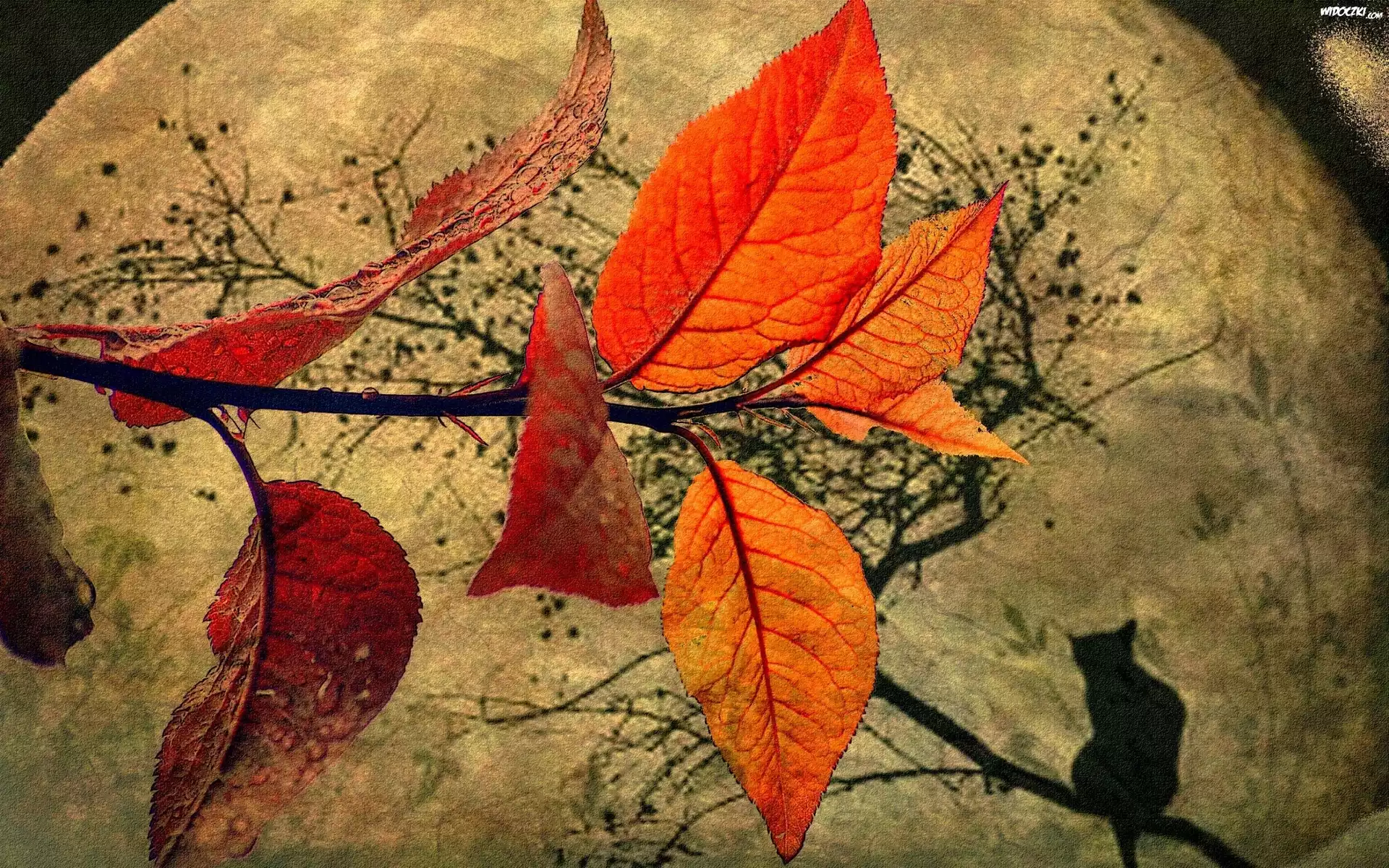 Zdjęcia, Liście, Kolorowe, Gałęzie, Kot