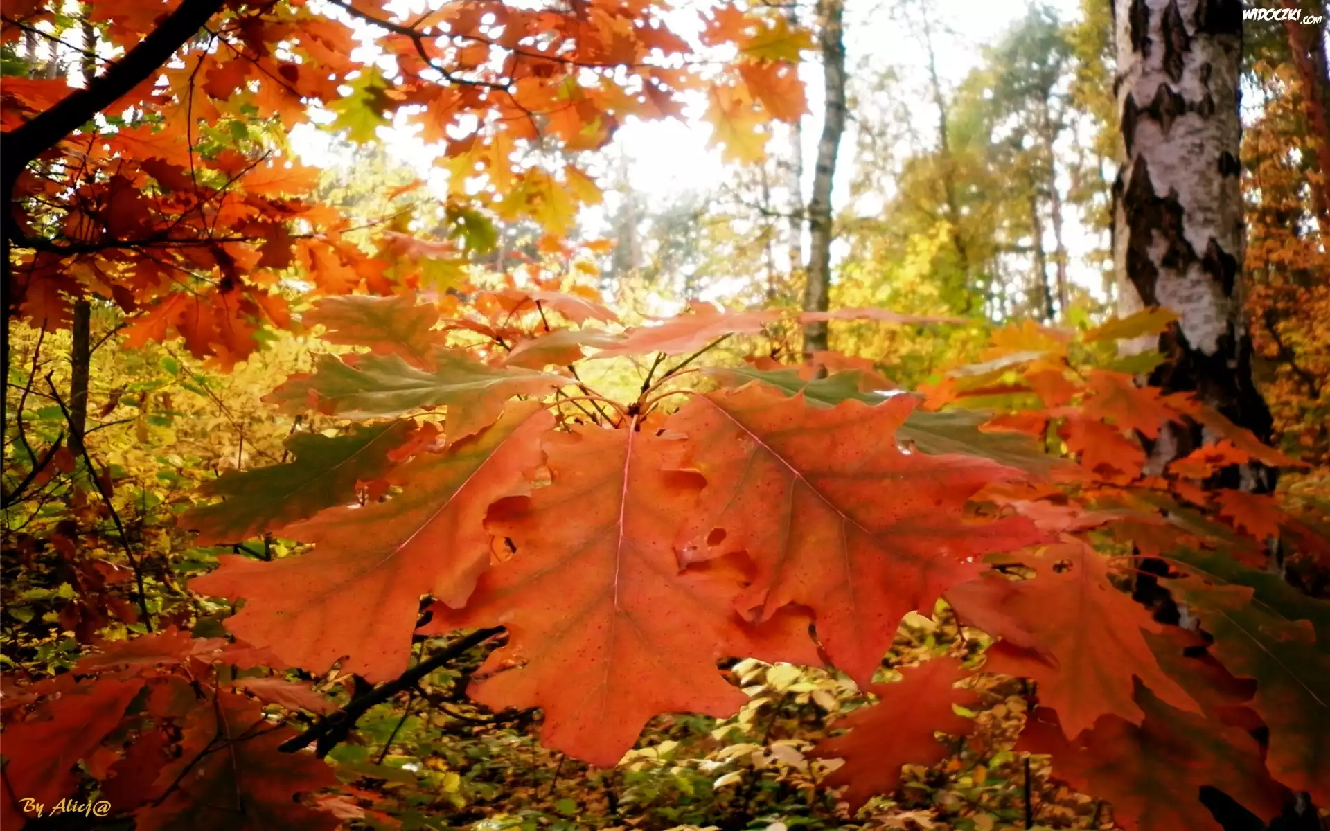 Zdjęcia, Jesień, Liście, Dębu