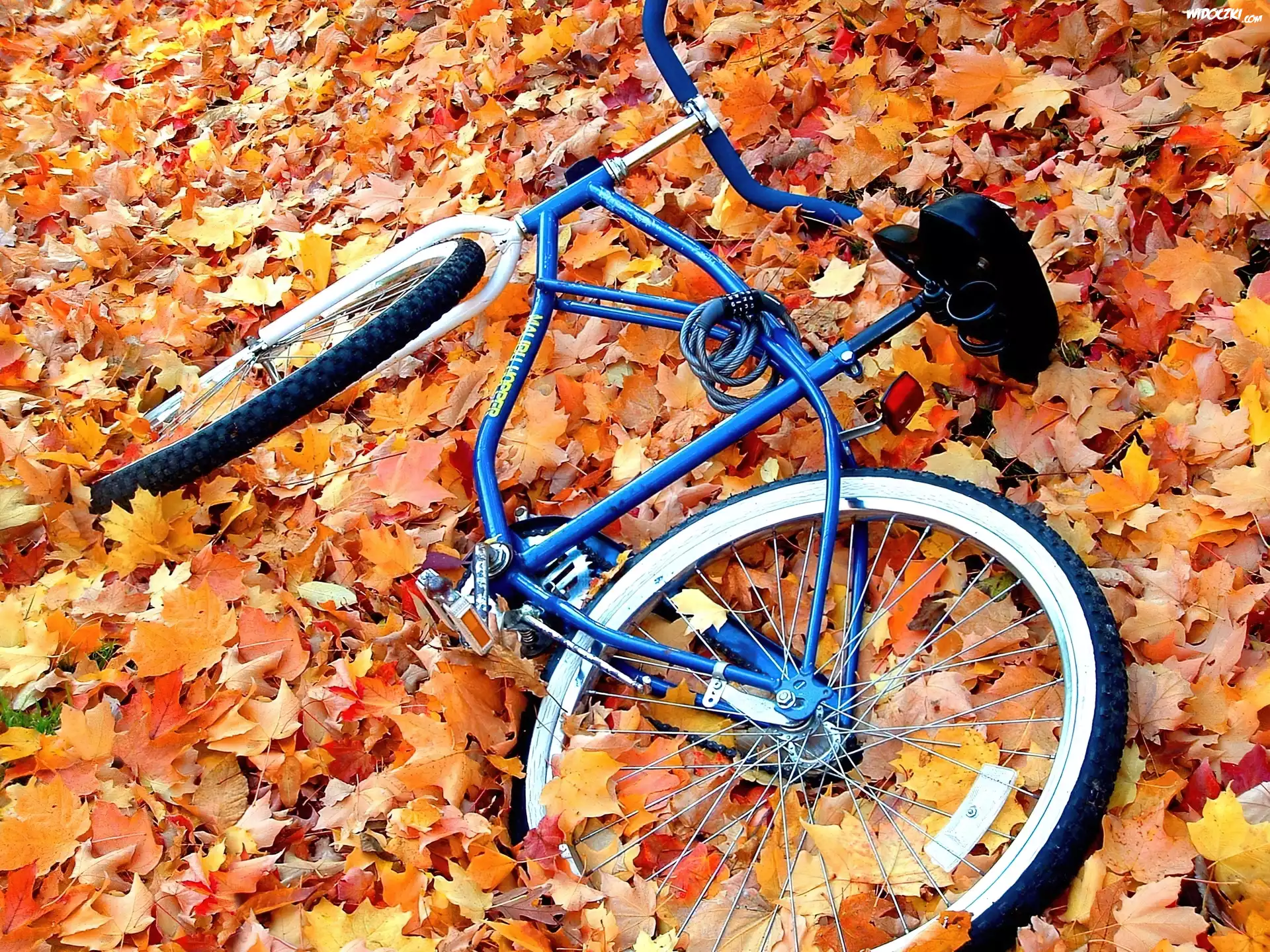 Zdjęcia, Łąka, Jesienne, Liście, Rower