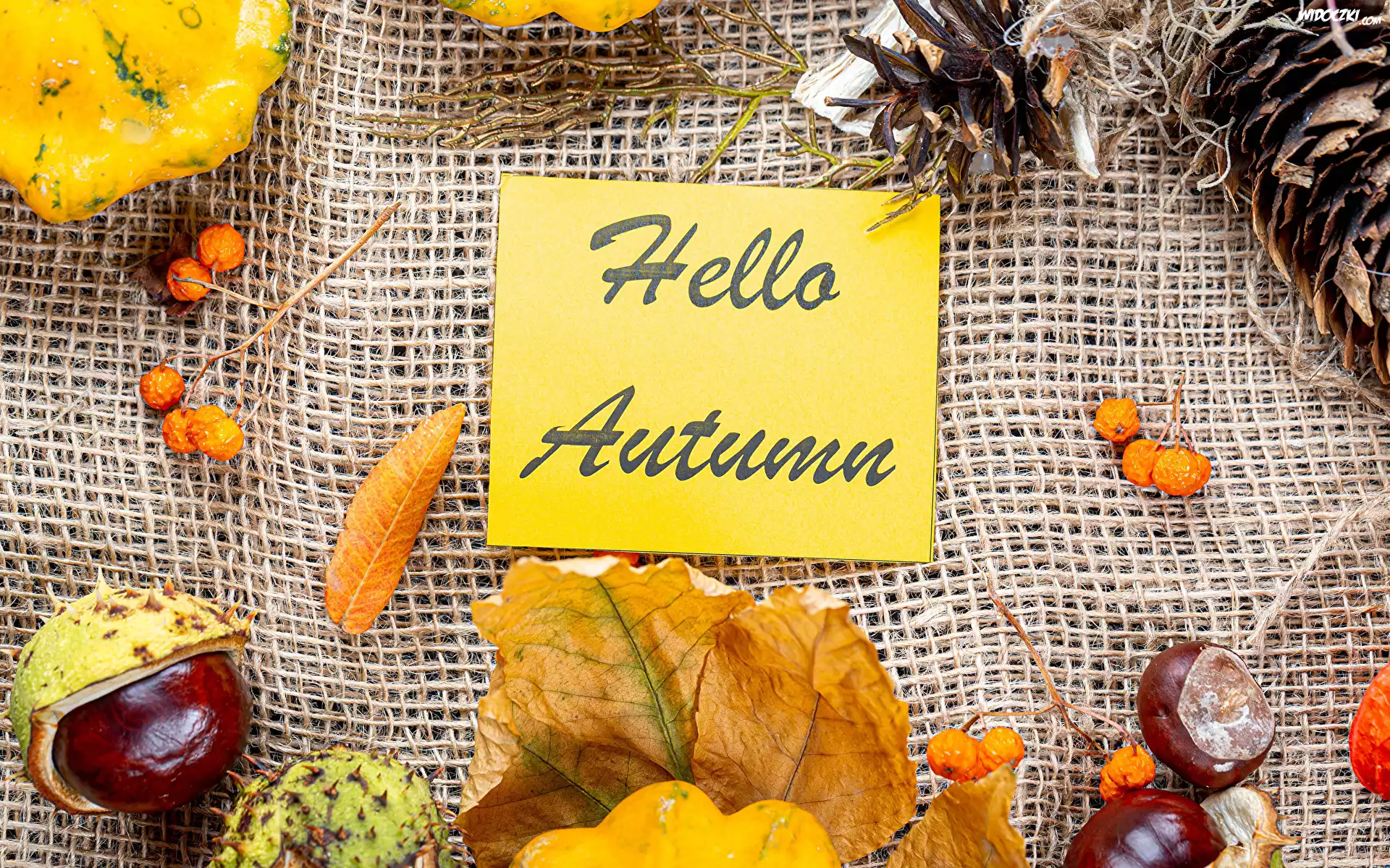 Zdjęcia, Liście, Szyszki, Jesień, Kasztany, Dynia