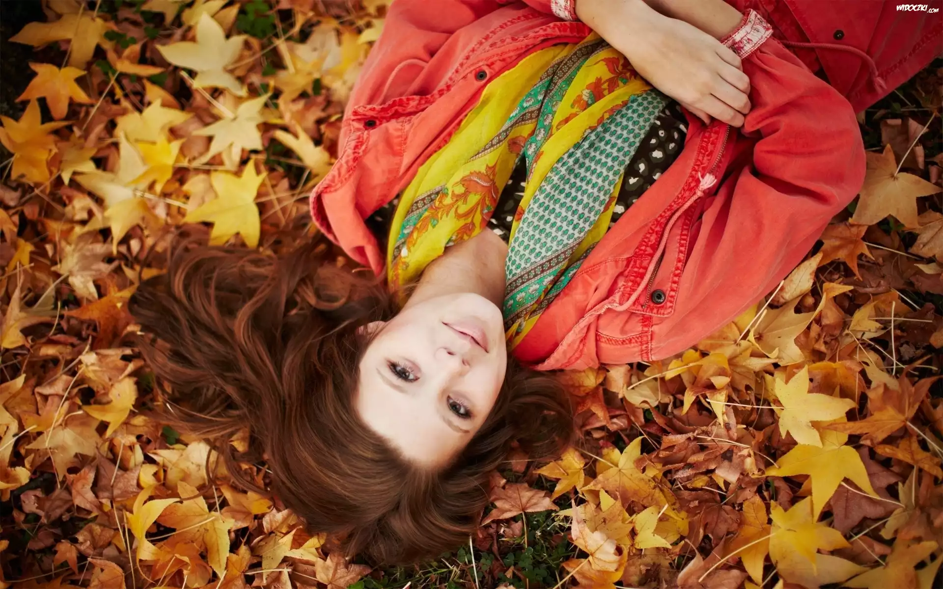 Zdjęcia, Kobieta, Liście, Jesień