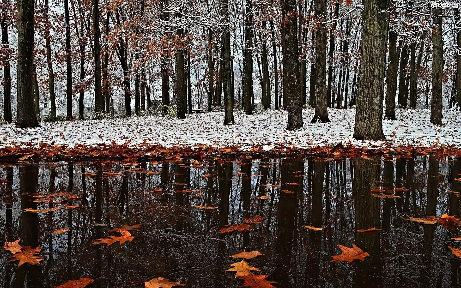 Zdjęcia, Liście, Kałuża, Park, Pierwszy, Śnieg