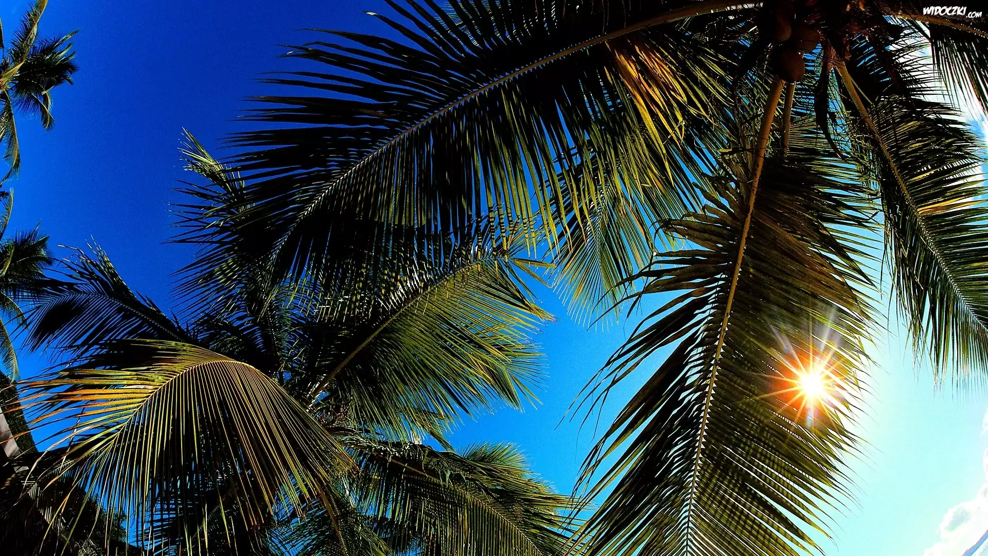 Zdjęcia, Liście, Palm, Promienie, Słoneczne