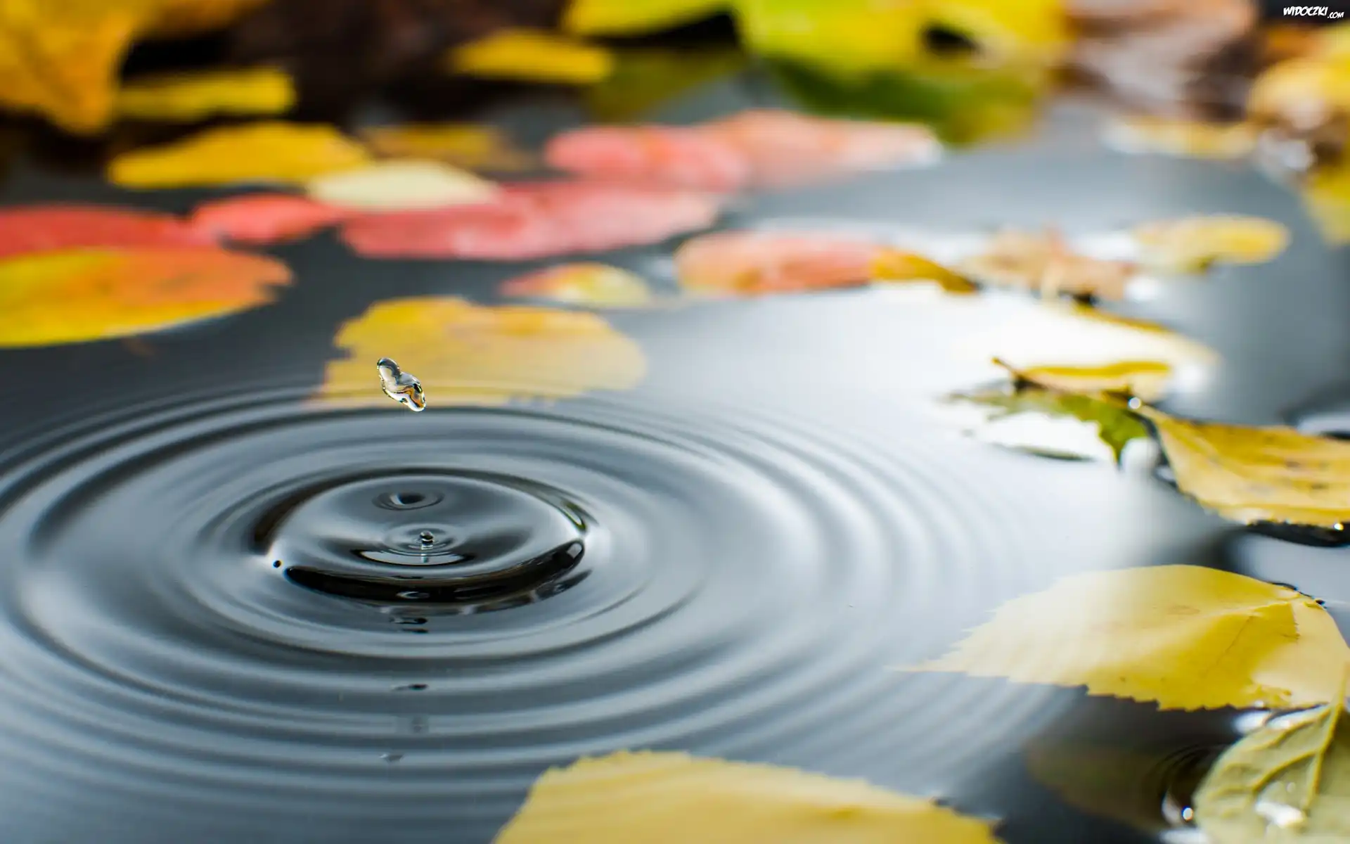 Liście, Jesień, Deszcz, Kropla, Rozbryzg, Woda
