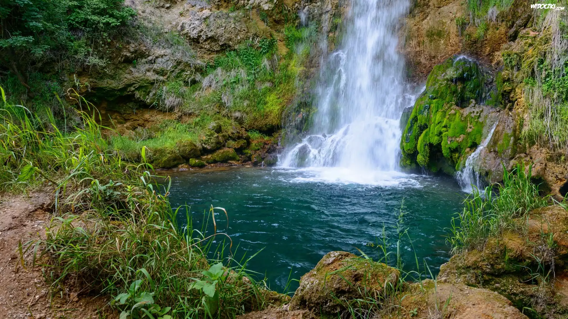 Porośnięte, Skały, Wodospad, Lisine, Rośliny, Serbia