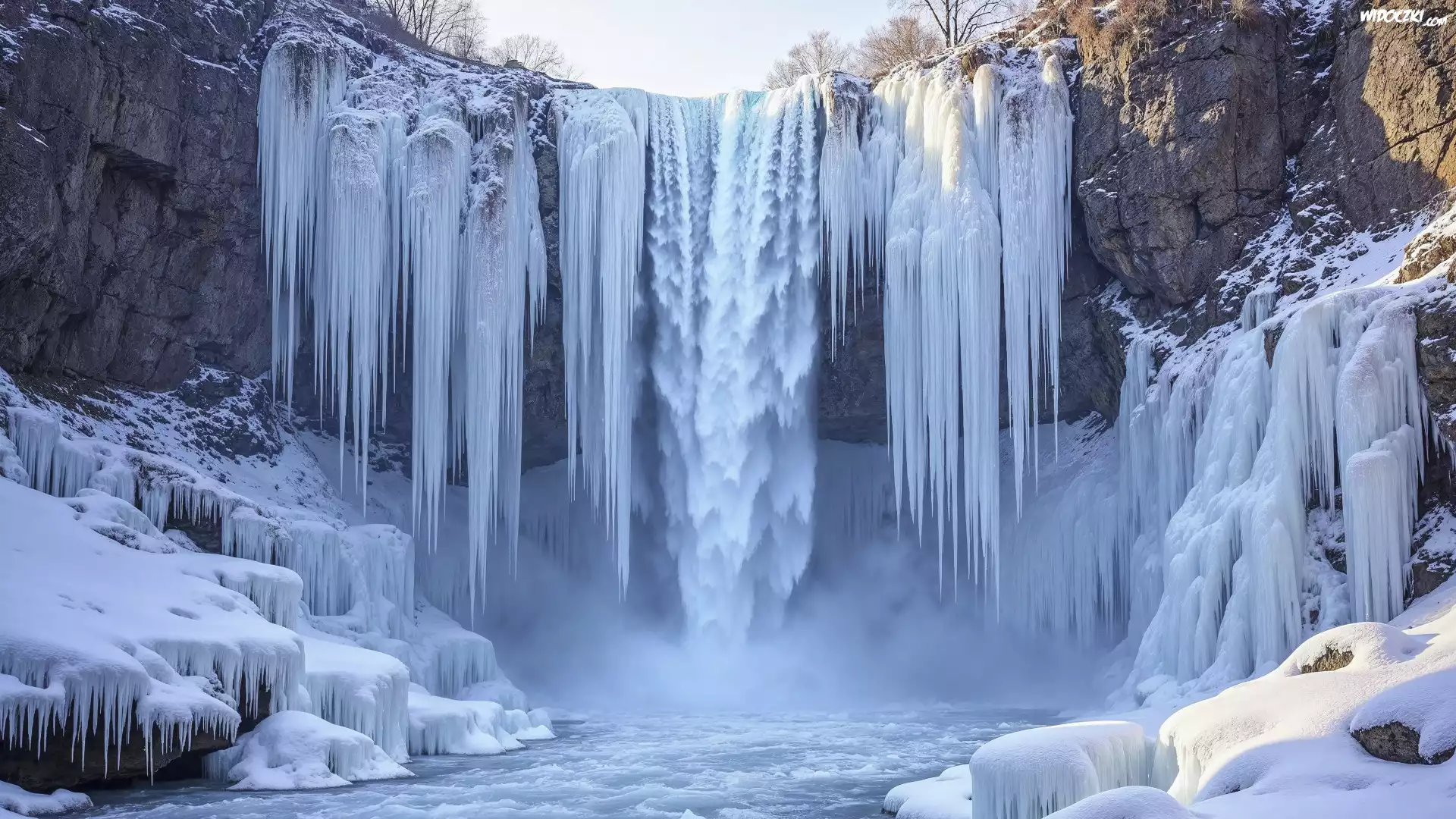 Wodospad Gjeong, Korea Południowa, Jecheon, Wodospad, Sople, Lód